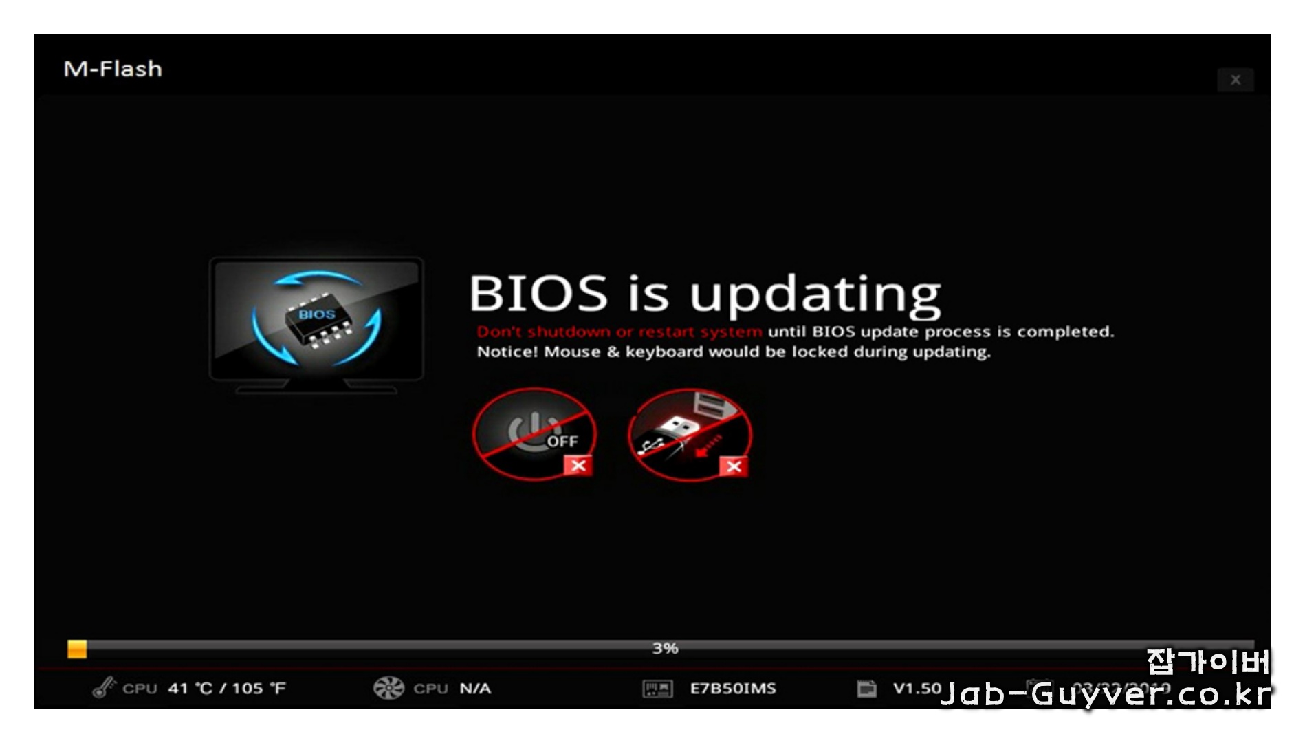 MSI 메인보드 펌웨어 업데이트는 컴퓨터의 안정성과 성능을 향상시키는 중요한 작업입니다. 그러나 때로는 업데이트 과정에서 문제가 발생하여 부팅이 불가능한 상황에 놓일 수 있는데 컴퓨터나 노트북 등 메인보드 바이오스 업데이트 시 전원이 꺼지지 않도록 주의하는것이 매우 중요하며 업데이트 중 멈춤이 발생하더라도 강제종료 및 재부팅 버튼을 누르지 않느것이 중요합니다.
