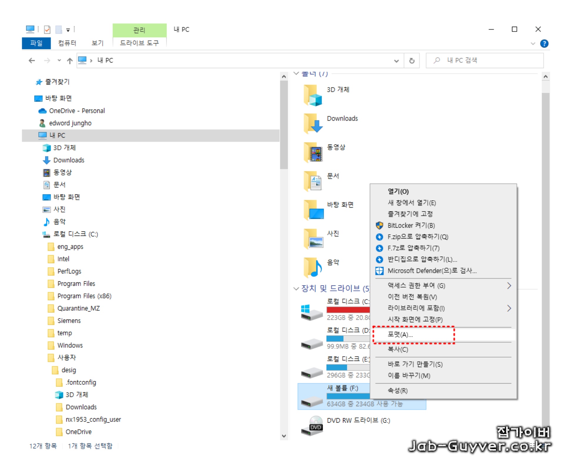 USB 플래시 드라이브를 준비하며 이때 USB는 NTFS에서 FAT32 포맷을 합니다.