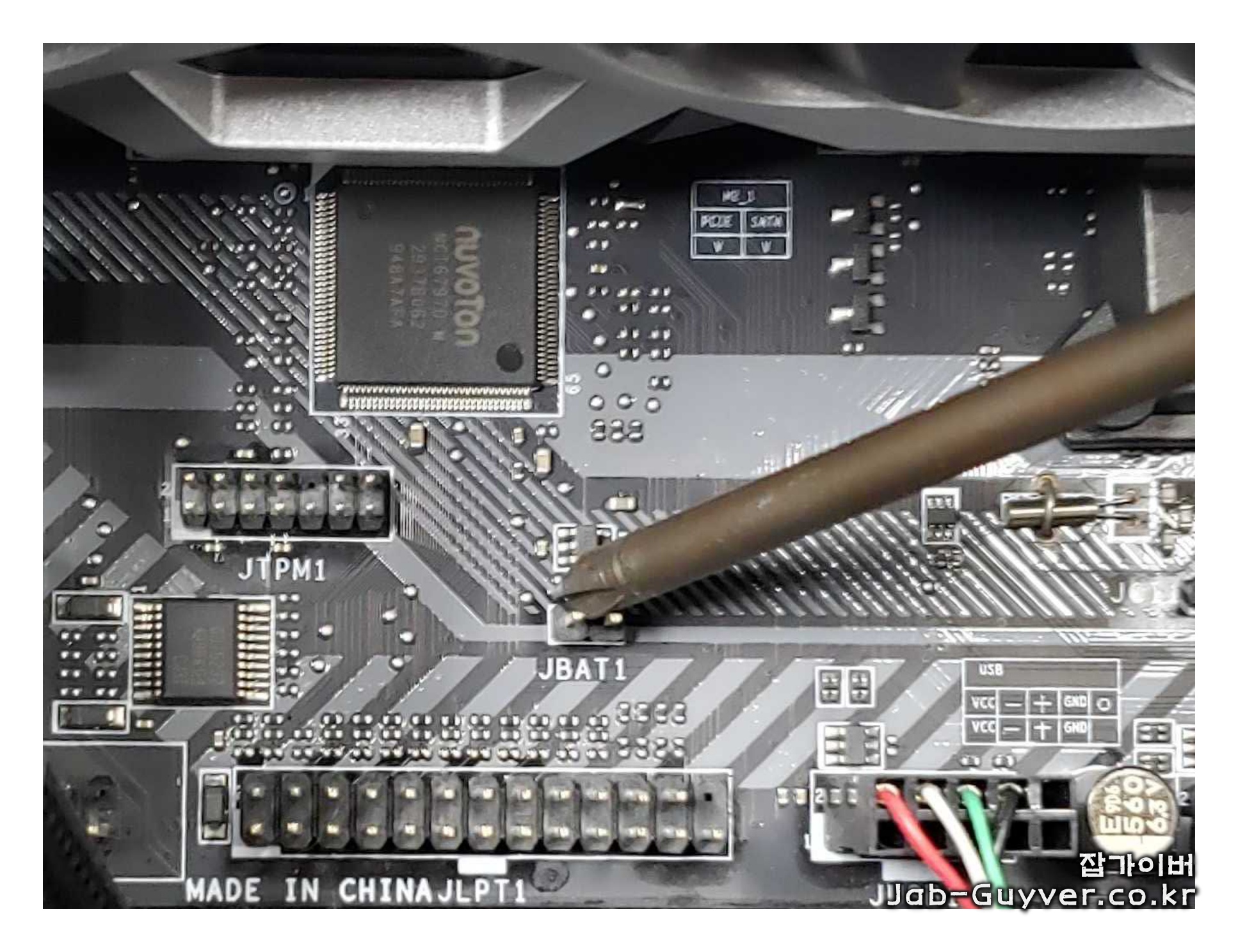 메인보드 컴퓨터 부팅 문제를 해결하기 위해서는 JBAT1 클리어를 진행합니다.