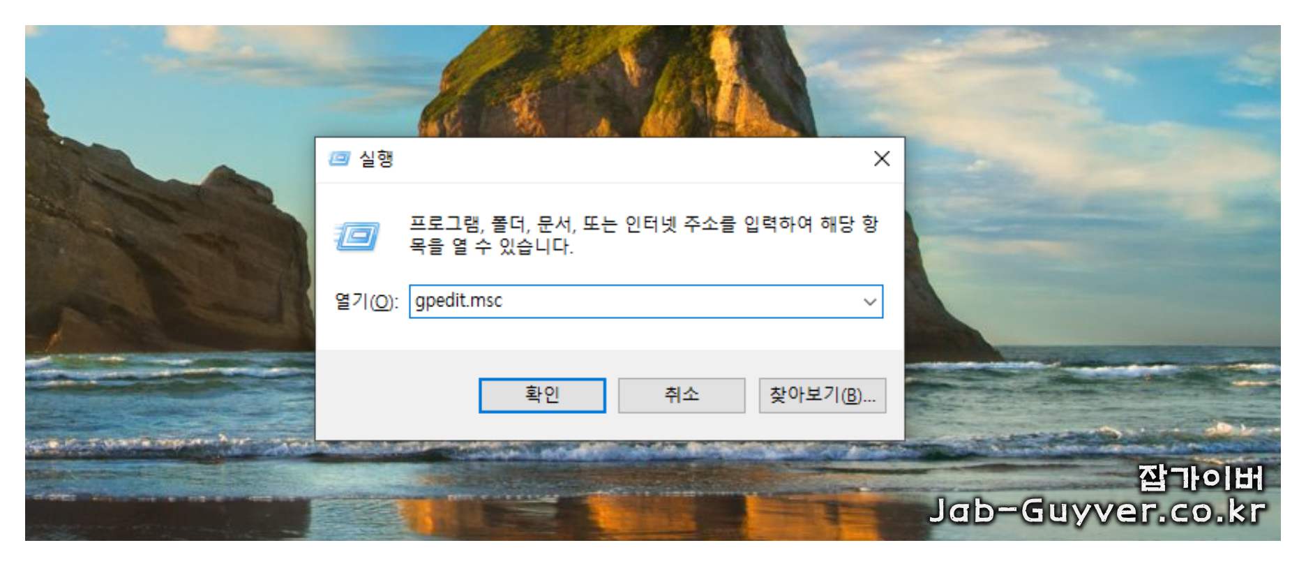 Windows 키 + R을 누르고 gpedit.msc를 입력해 로컬 그룹 정책 편집기를 실행합니다.