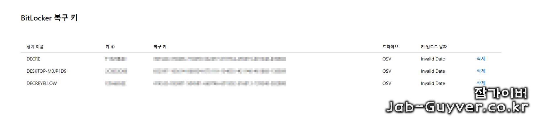 https://account.microsoft.com/devices/recoverykey 페이지에서 Microsoft 계정으로 로그인하면, 연결된 장치와 함께 복구키 ID와 실제 키 값이 나란히 표시됩니다. BitLocker 잠금 화면 하단에는 8자리 복구키 ID가 나오는데, 이 값을 보고 어떤 키가 해당 장치용인지 구분하면 됩니다.