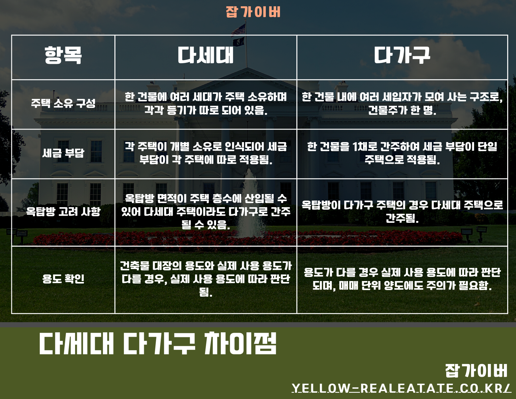 다가구와 다세대의 차이를 명확하게 이해하지 않고 투자하면 과도한 세금 부담을 느낄 수 있습니다. 또한 새 아파트를 분양받을 때도 어려움이 생길 수 있으며, 다른 아파트를 소유하게 될 때마다 최대 12%의 가산 세율이 적용될 수 있습니다.