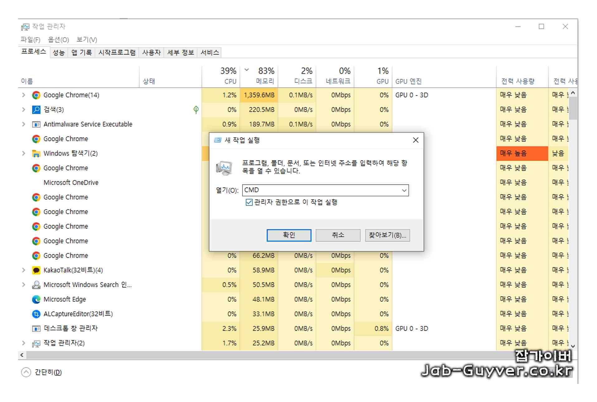 1. `Ctrl + Shift + Esc` 키를 눌러 작업 관리자를 엽니다.