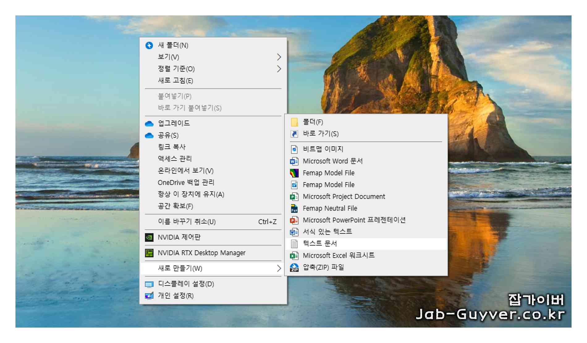해당 실행파일을 만드는 방법은 바탕화면에 빈 공간에 우측 마우스를 클릭합니다.