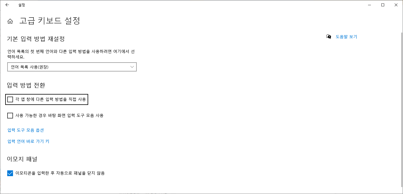 단순 종료보다는 윈도우 설정 → 시간 및 언어 → 입력 → 고급 키보드 설정에서 입력 방법 자동 전환 기능을 해제하거나, 기본 입력기로 MS 입력기 고정을 선택해야 재발을 막을 수 있습니다.