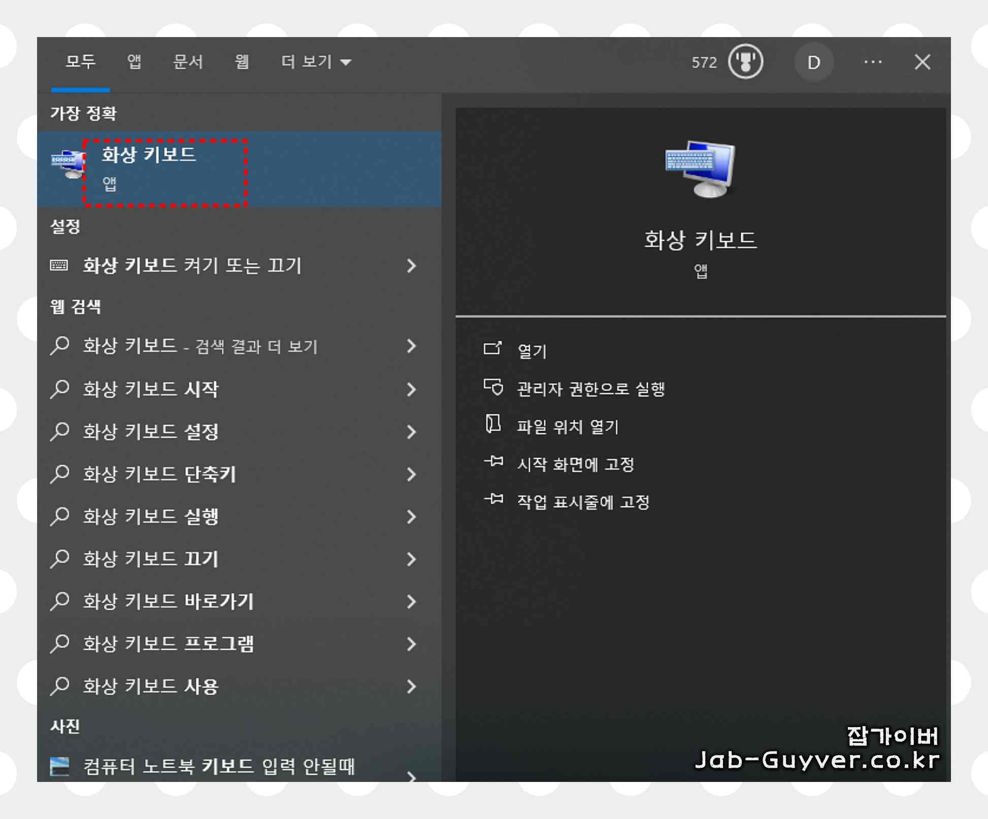 - 오른쪽 상단에서 "키보드"를 입력합니다.