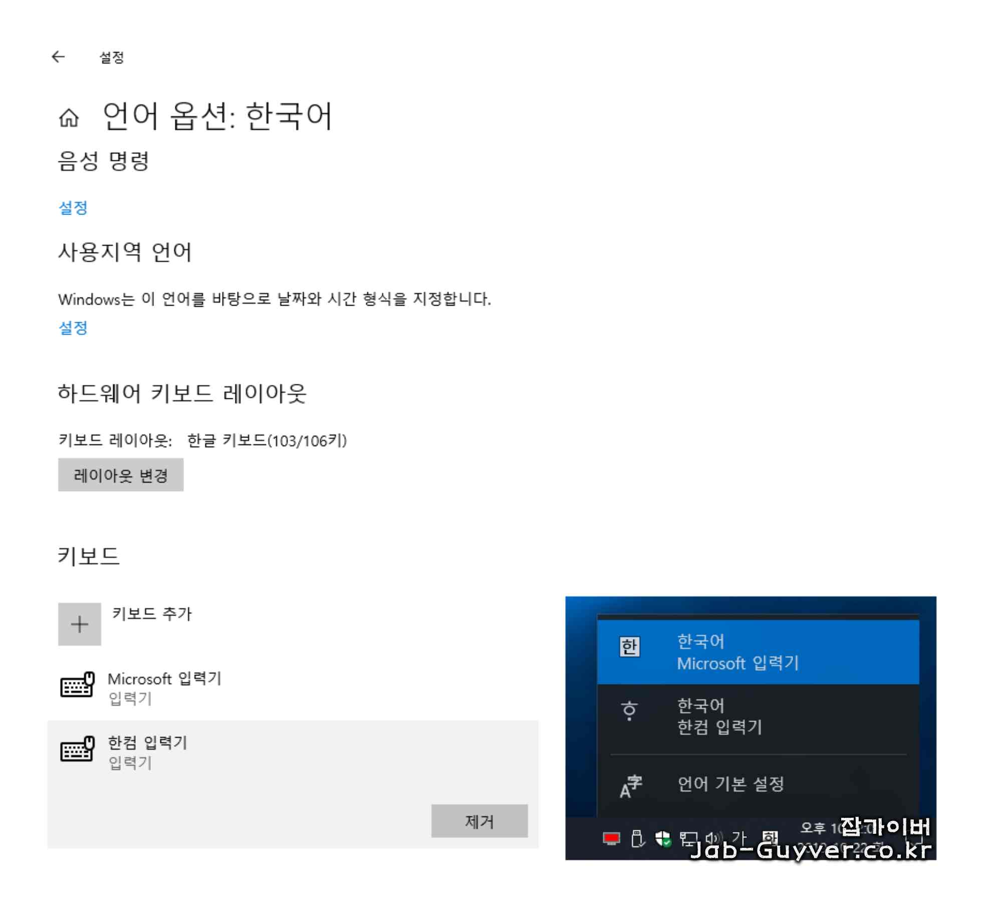 한컴 입력기 삭제 및 Microsoft 입력기 설치방법