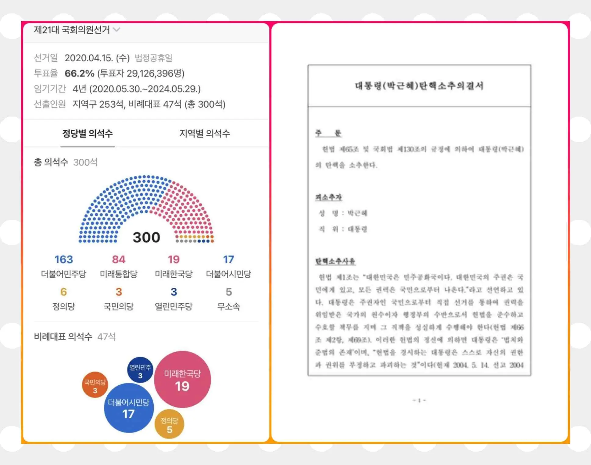 - 대통령 탄핵 심판은 헌법재판소에서 이루어지며, 재판관 6인 이상의 찬성이 필요합니다.