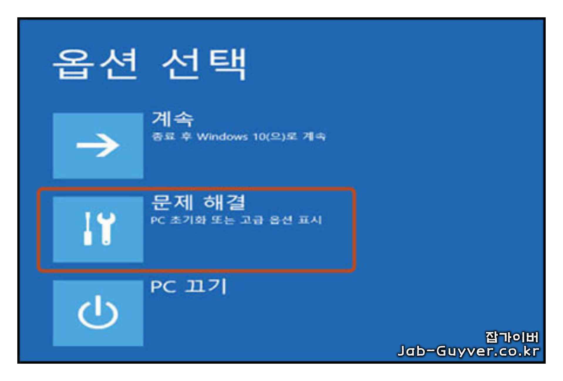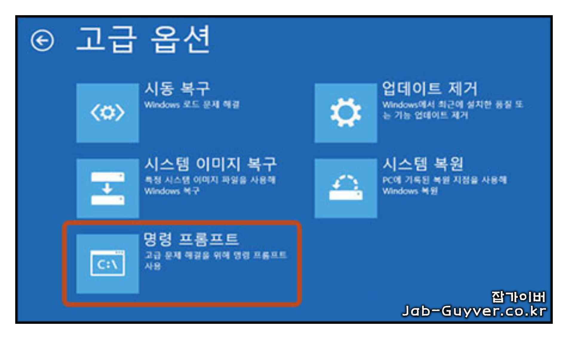 복구모드 부팅 후 문제해결 - 고급옵션 -> 명령프롬프트를 선택한 다음 아래 명령어를 입력합니다.