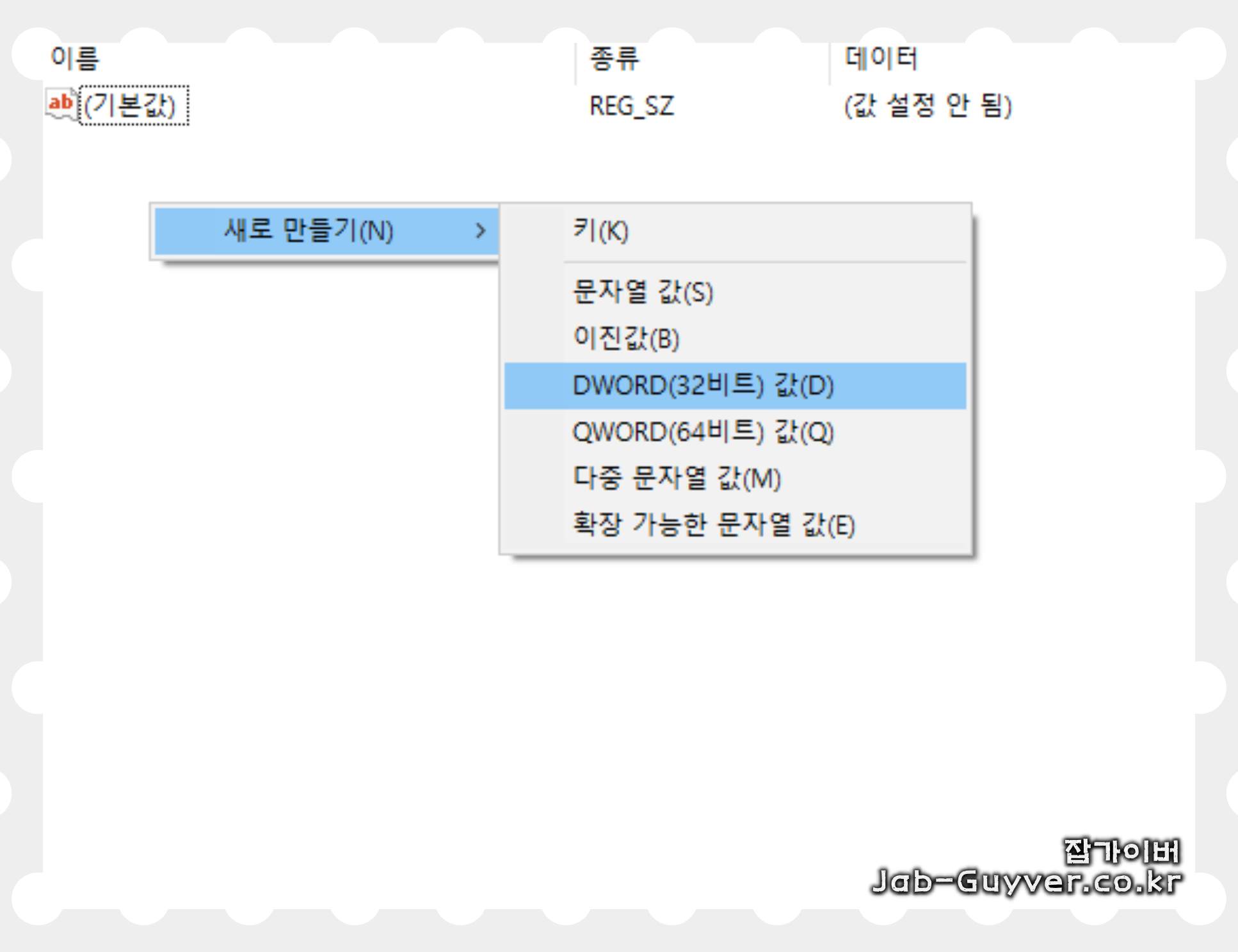 마우스 우클릭 후 새로 만들기 - DWORD(32비트) 값 추가한 다음 이름을 'DisableRootAutoUpdate' 설정합니다.