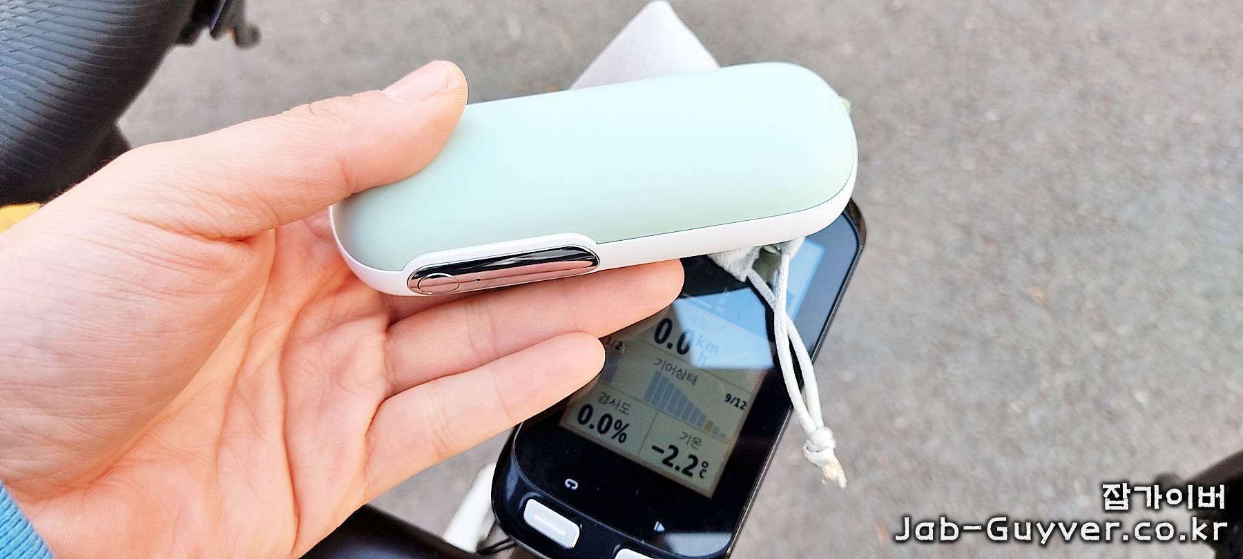 100km 이상의 장거리 라이딩 중에도 손난로로서의 기능과 함께 급격히 줄어드는 핸드폰 배터리를 충전하는 데 아무 문제가 없었습니다. 가볍고 슬림한 디자인으로 인해 어떠한 야외 활동에서도 큰 부담 없이 휴대할 수 있으며, 추운 날씨에도 끄떡없는 따뜻함을 제공합니다.