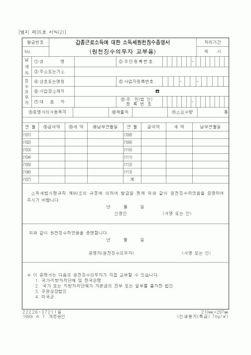 ▶ 원천징수영수증