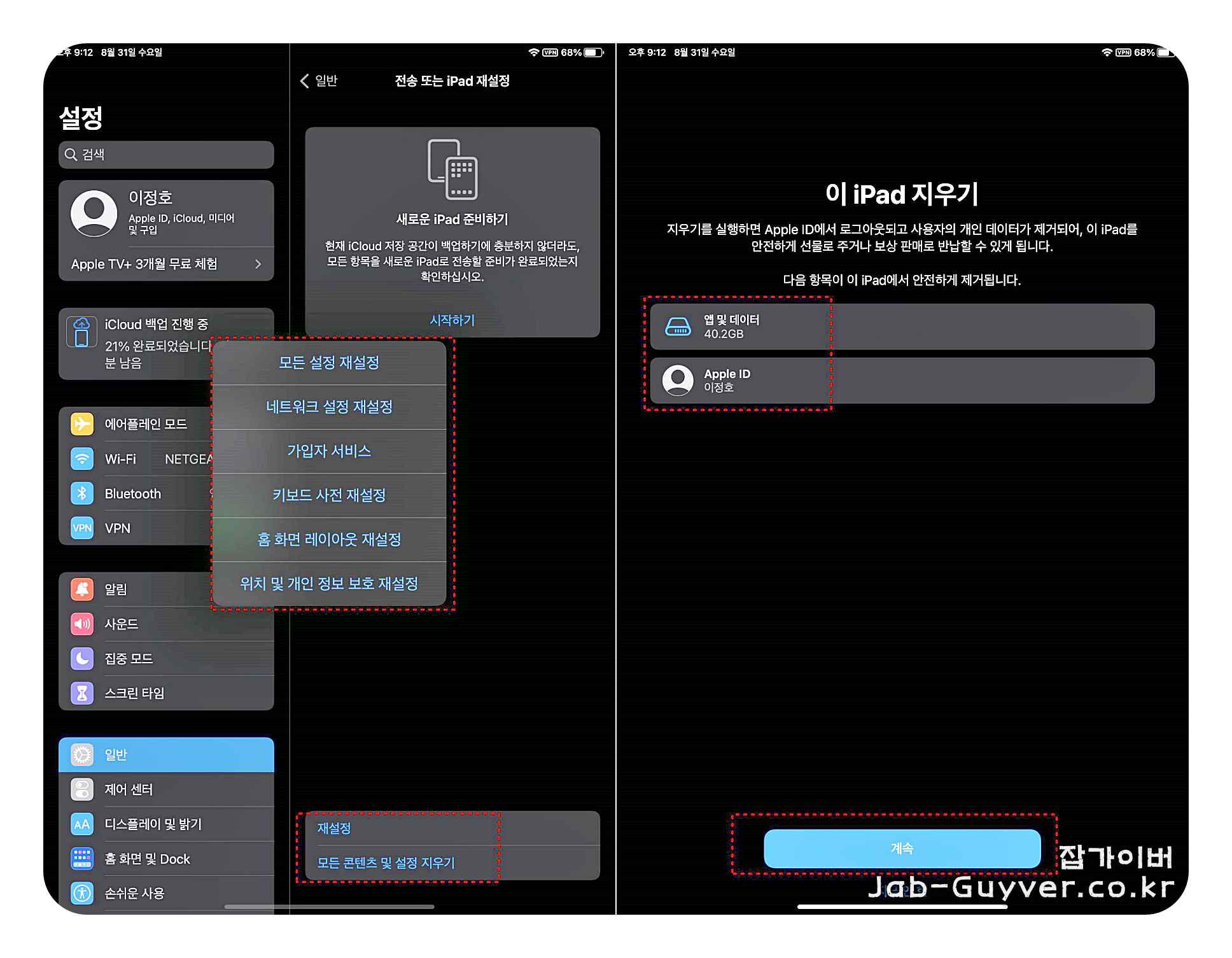 아이패드와 애플펜슬을 연결 시 사용하는 블루투스에 문제가 발생한 경우 네트워크 재설정을 통해 모든 연결정보를 초기화 후 다시 연결합니다.