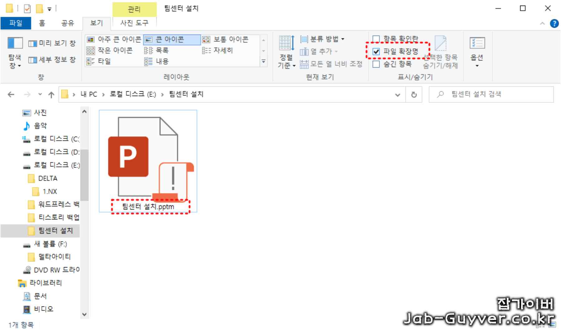 보기탭에서 파일 확장명을 보이도록 체크합니다.