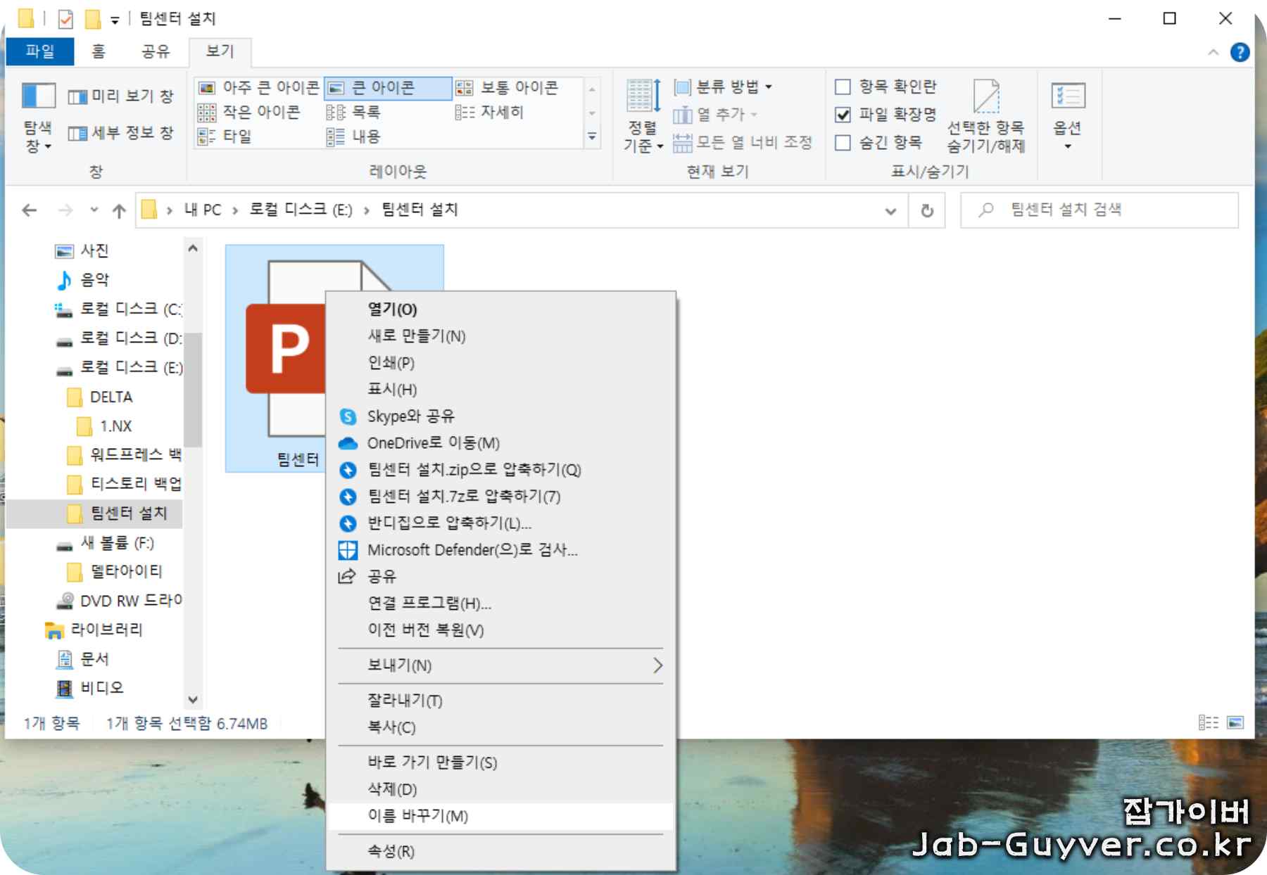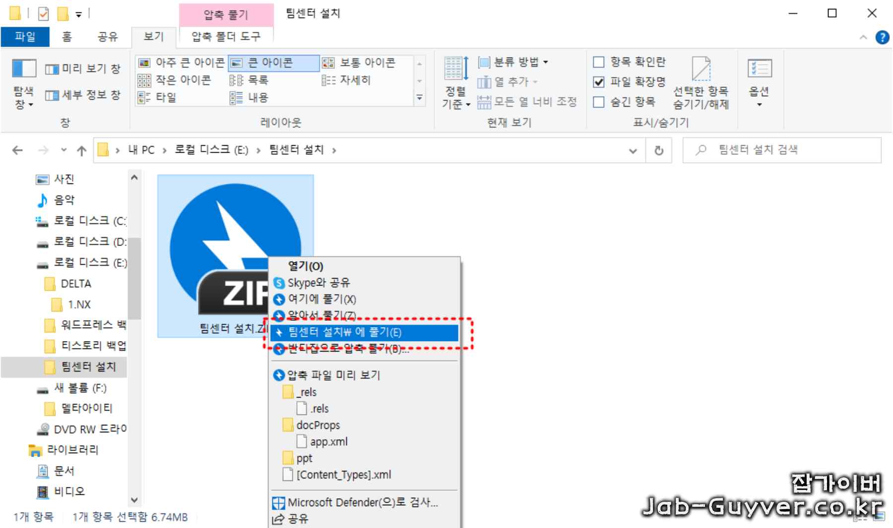 그렇게 파워포인트 파일이 압축파일로 변경되었다면 마우스 우클릭 후 압축을 해제합니다.