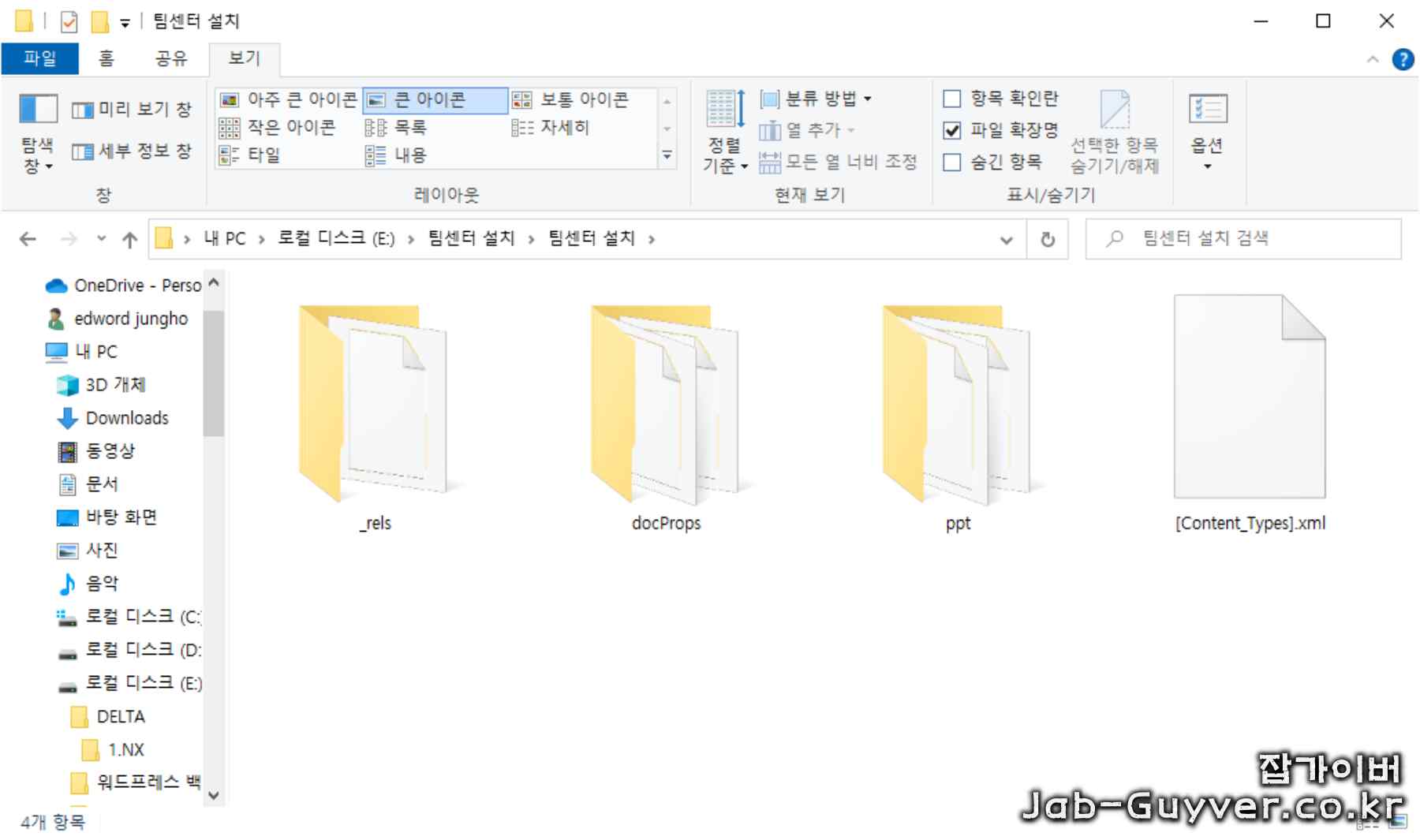 그럼 rels와 docprops 폴더 그리고 ppt 폴더 3개가 보이는데 ppt 폴더로 들어갑니다.