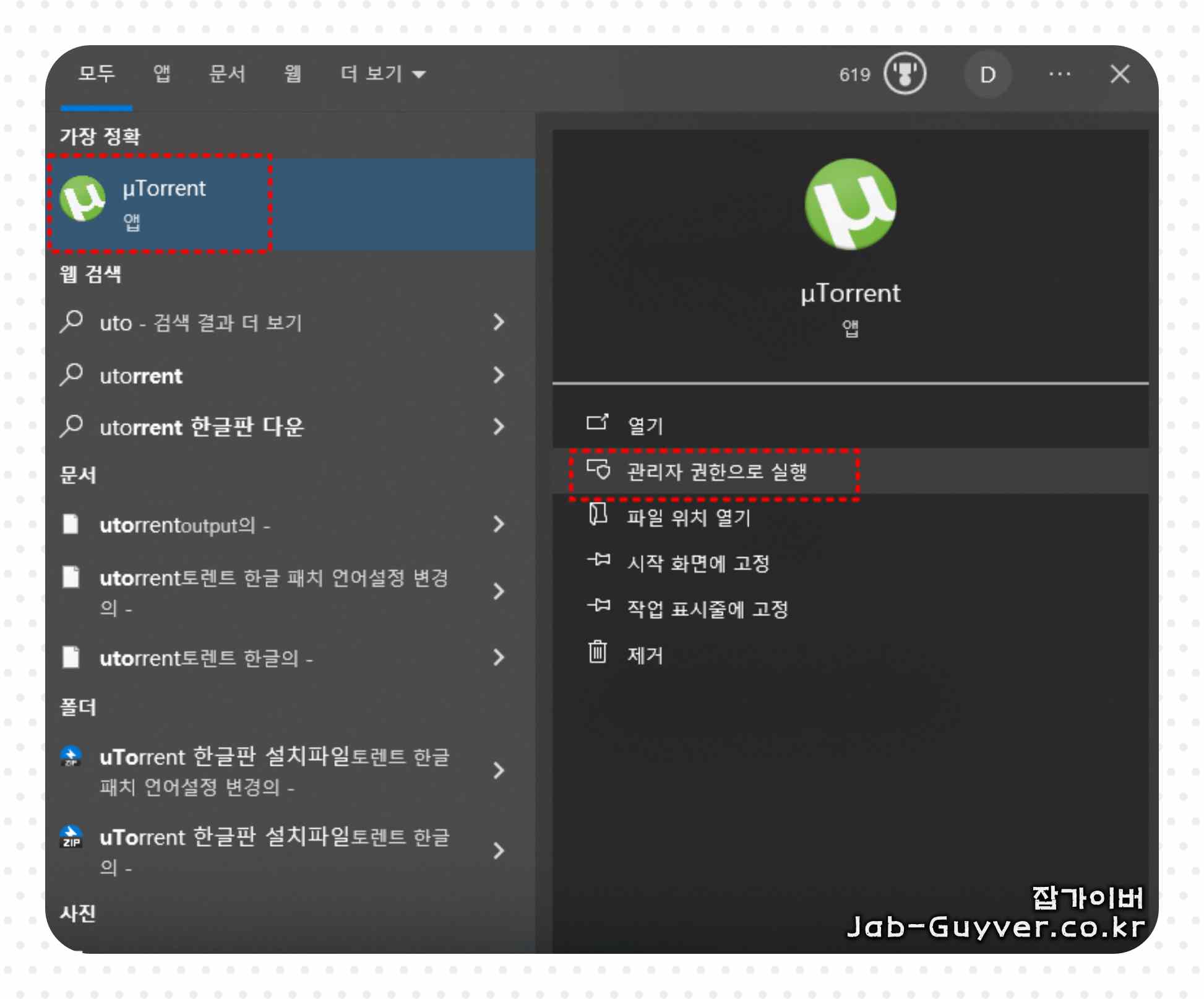 토렌트 클라이언트 재설치 또는 관리자 권한 실행