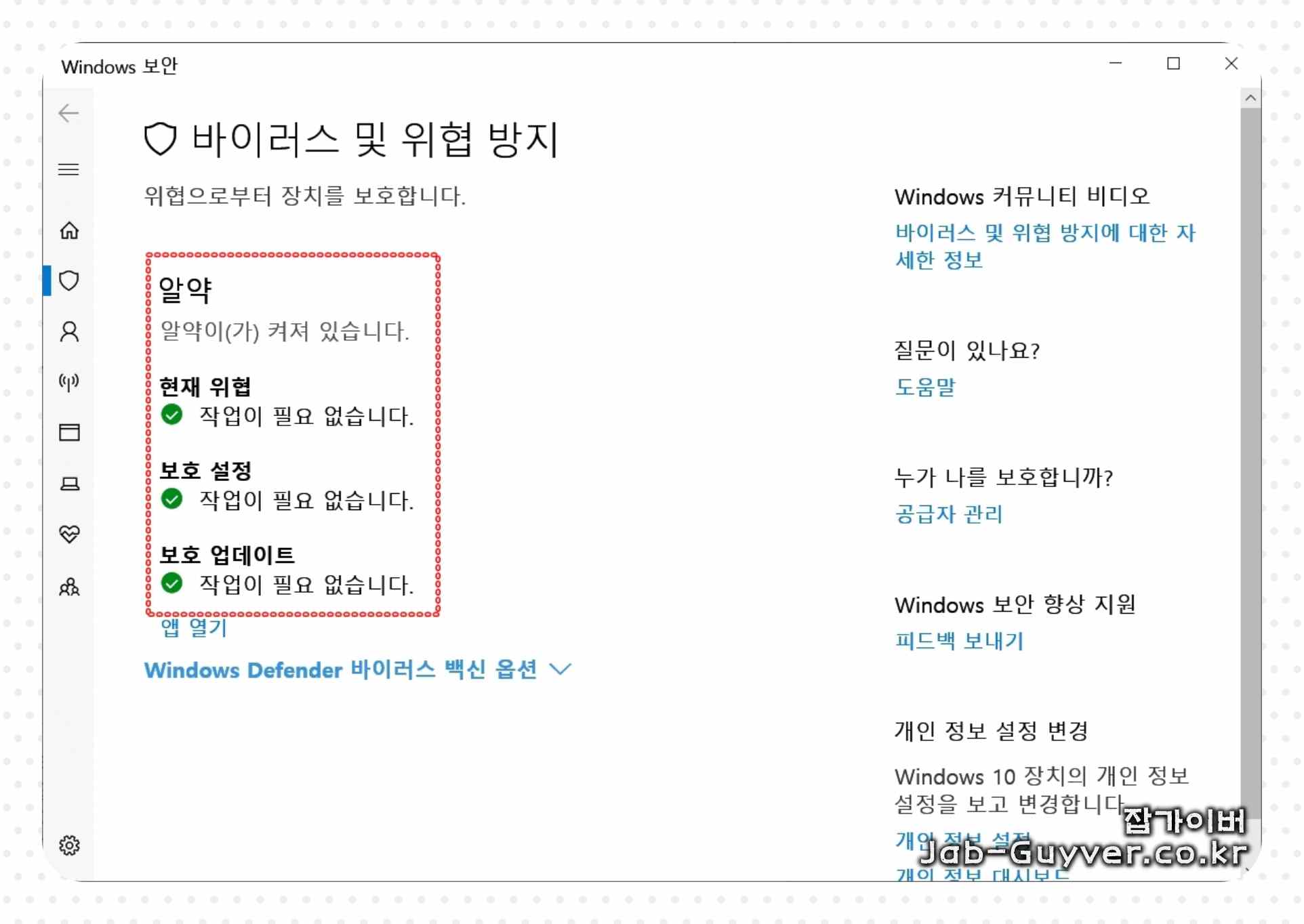 - 필요에 따라 윈도우 디펜더 및 기타 안티바이러스 프로그램을 일시적으로 비활성화합니다.