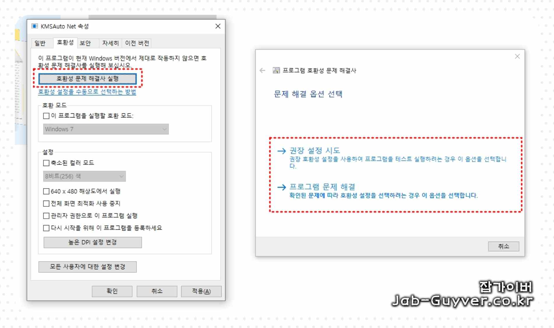 - 프로그램의 속성을 열어 '호환성' 탭으로 이동합니다.