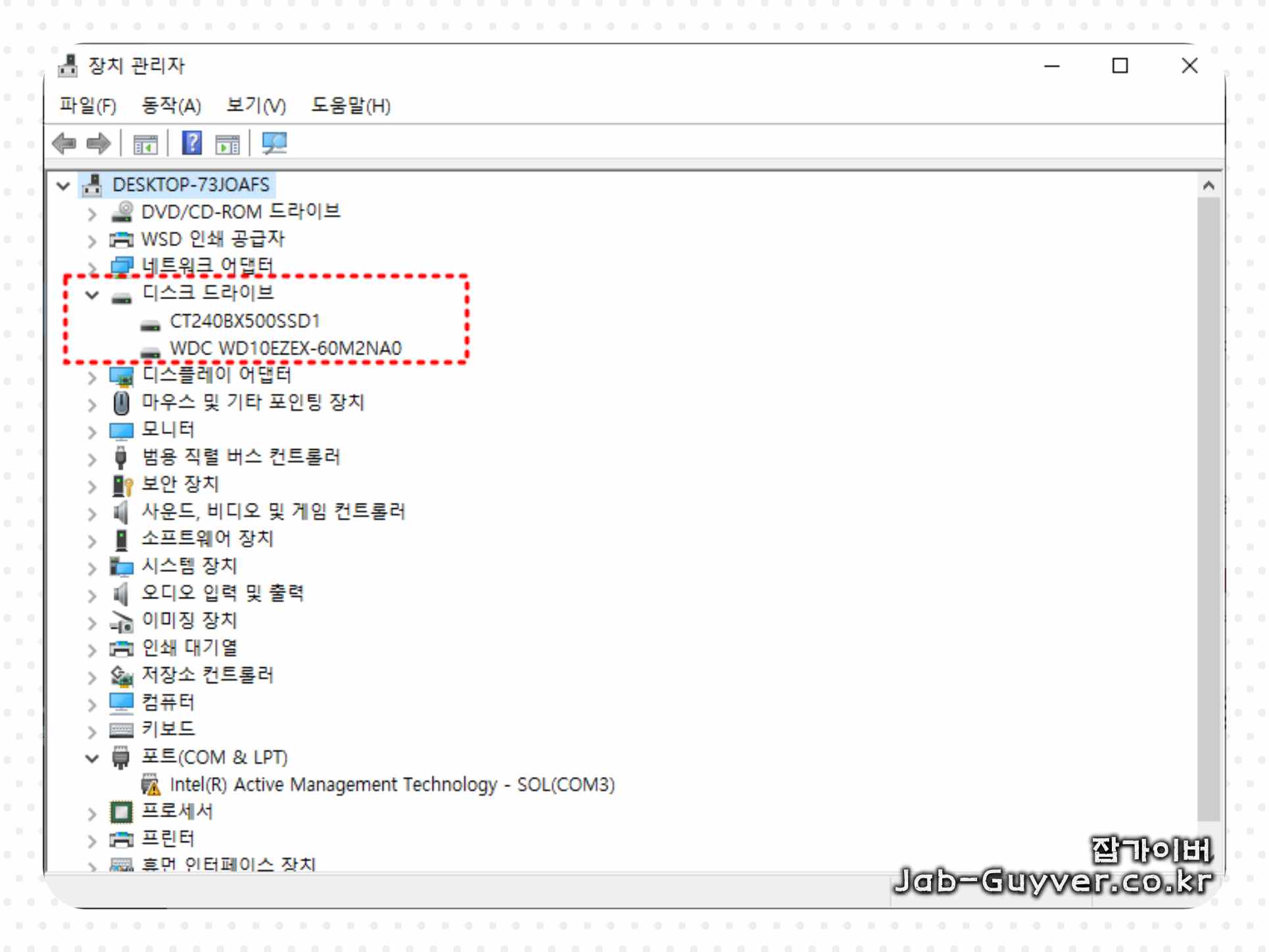 컴퓨터 관리에서 IDE ATA/ATAPI 컨트롤러의 속성을 확인하고, 전송 모드를 'PIO Only'로 설정합니다.