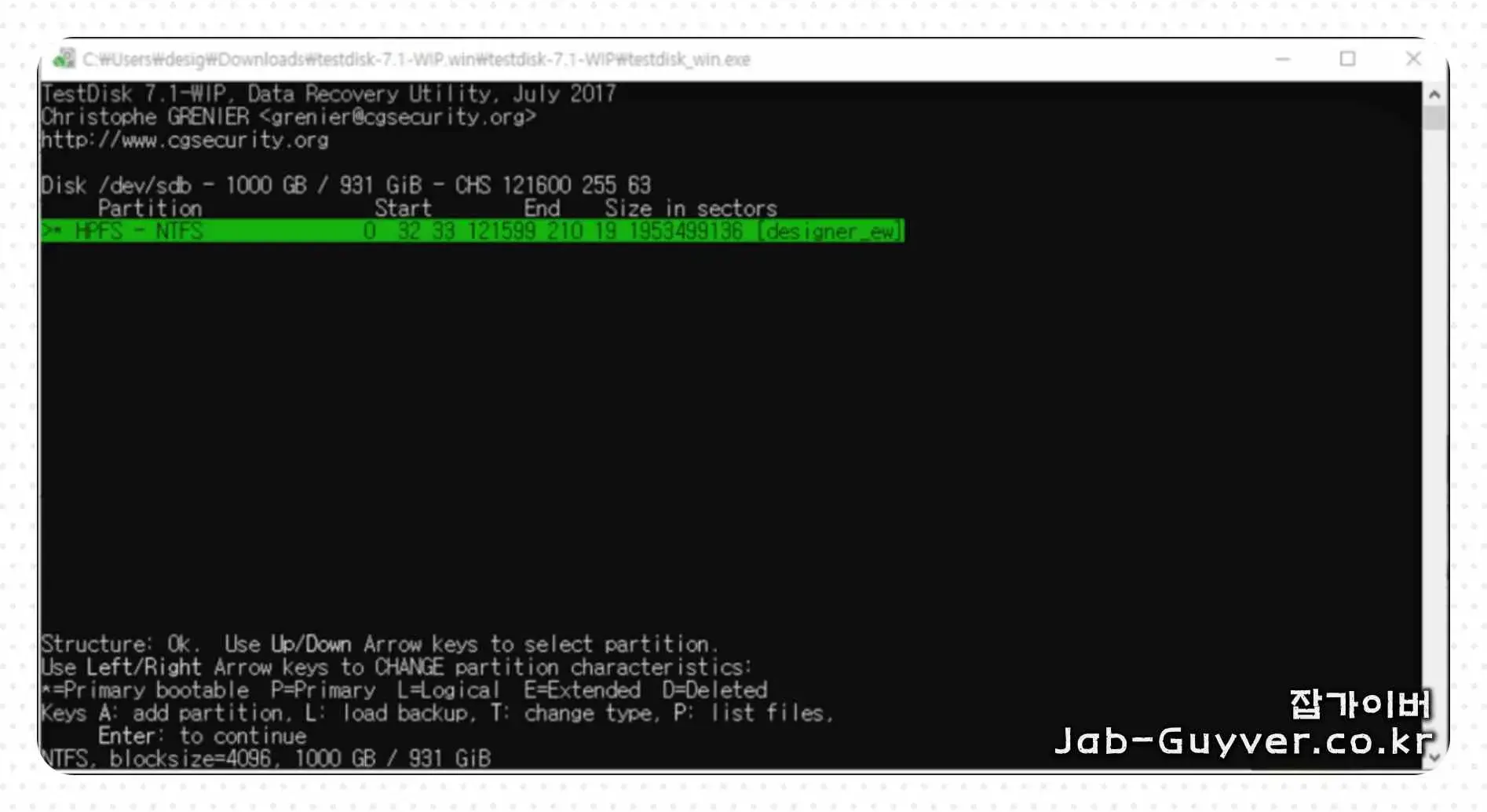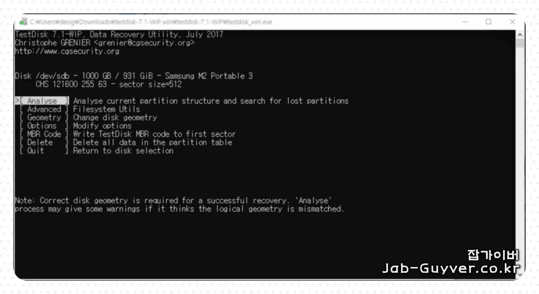 파티션 복구 프로그램 TESTDISK 다운로드 사용법