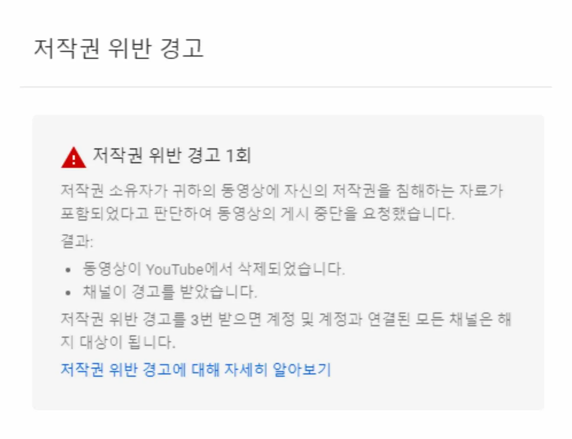 | 빨간 딱지 | 타인의 저작물 포함으로 인한 저작권 위반. 광고 수익은 저작물 소유자에게 전달. | 원저작권 소유자의 허가를 얻거나, 퍼블릭 도메인 또는 크리에이티브 커먼즈 자료 활용. |