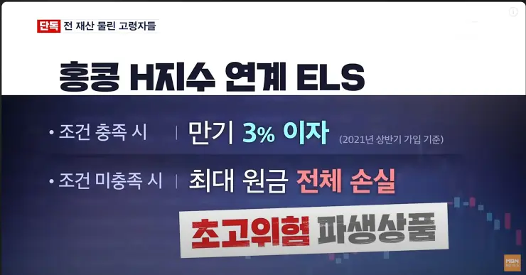 - 홍콩 H지수의 지속적인 하락으로 ELS 상품 투자자의 대부분이 손실을 입고 있습니다.