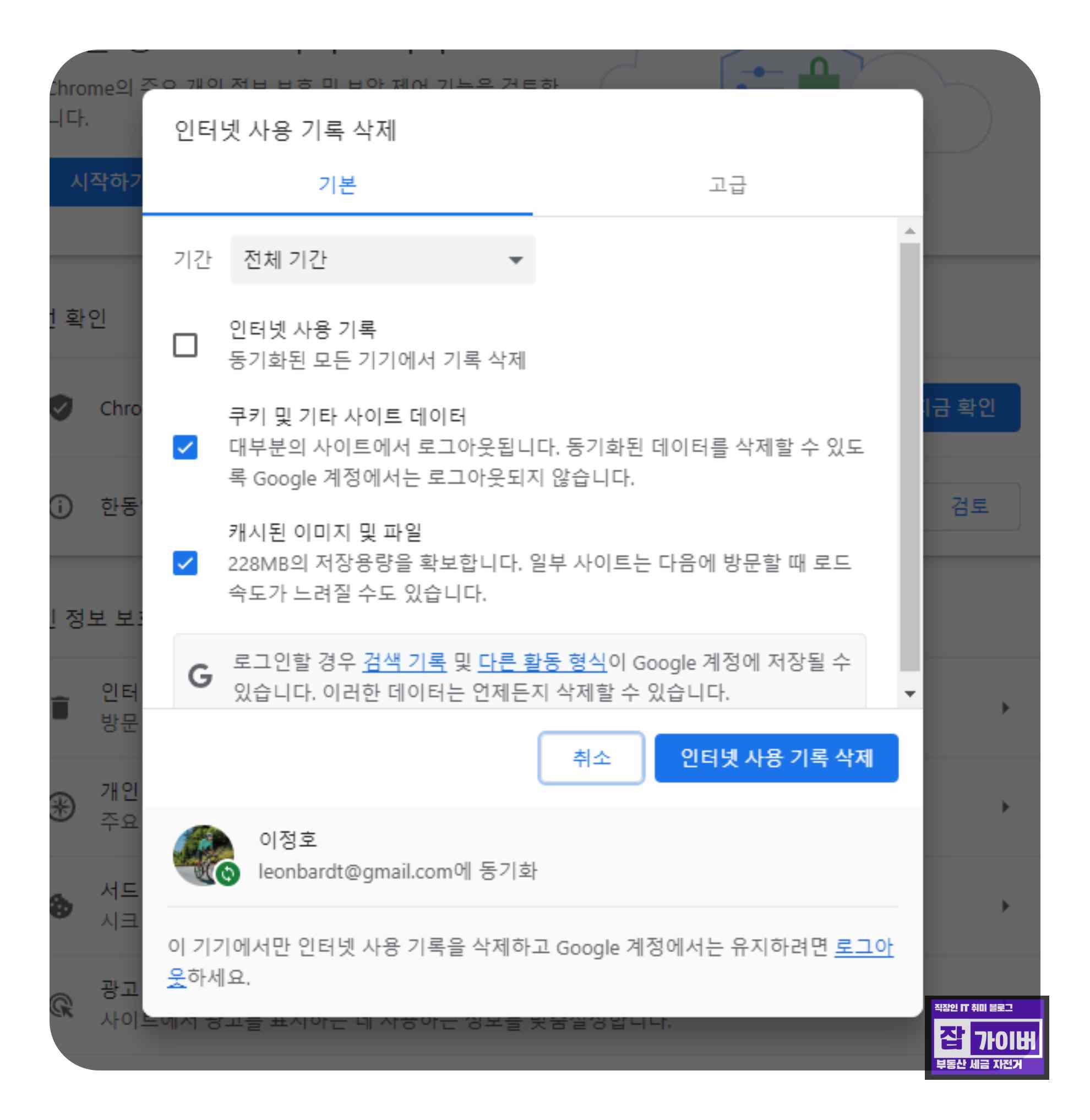인터넷 사용기록 캐시 쿠키 삭제