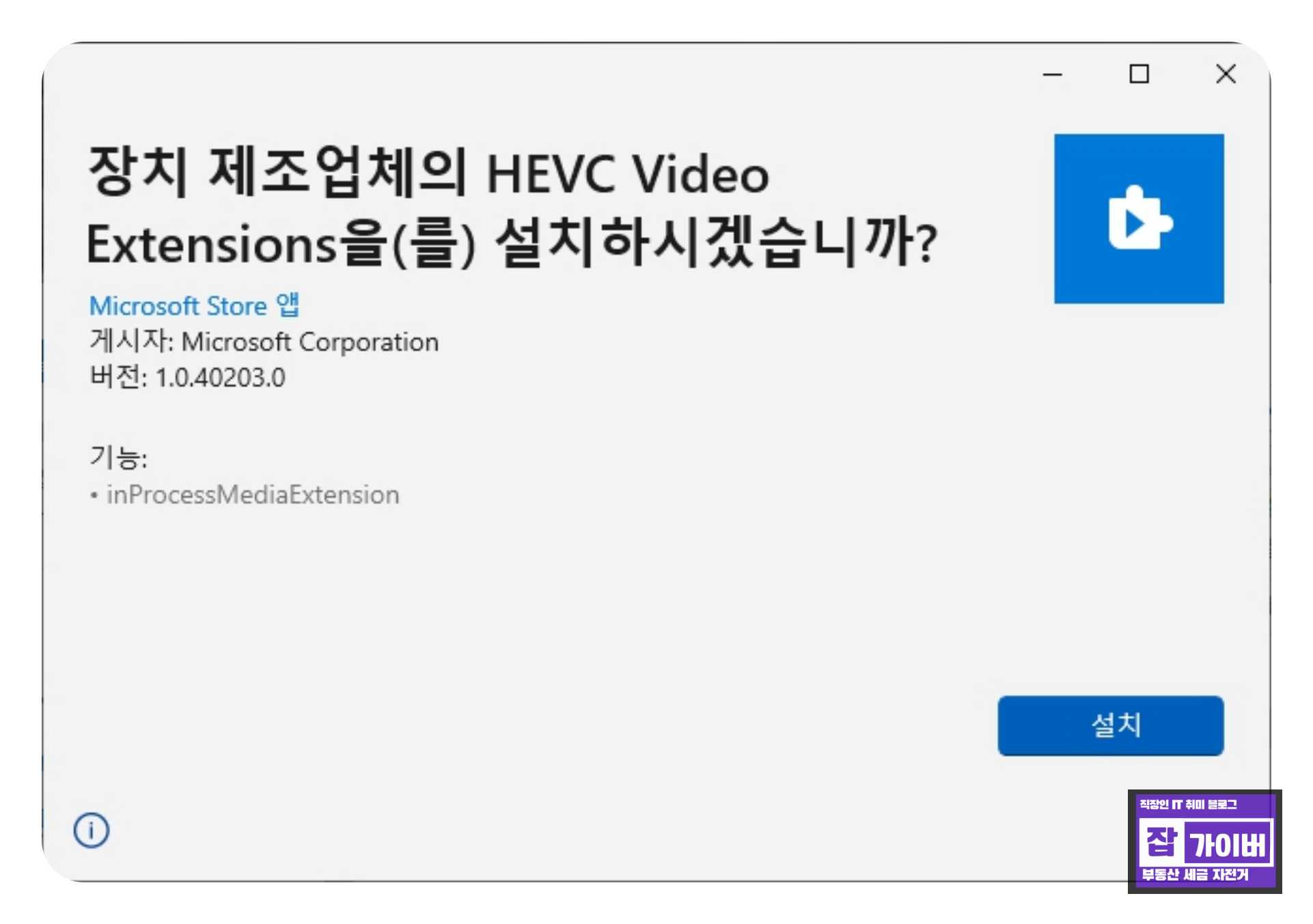 윈도우 동영상재생 - HEVC VIDEO EXTENSION H265 다운로드 설치