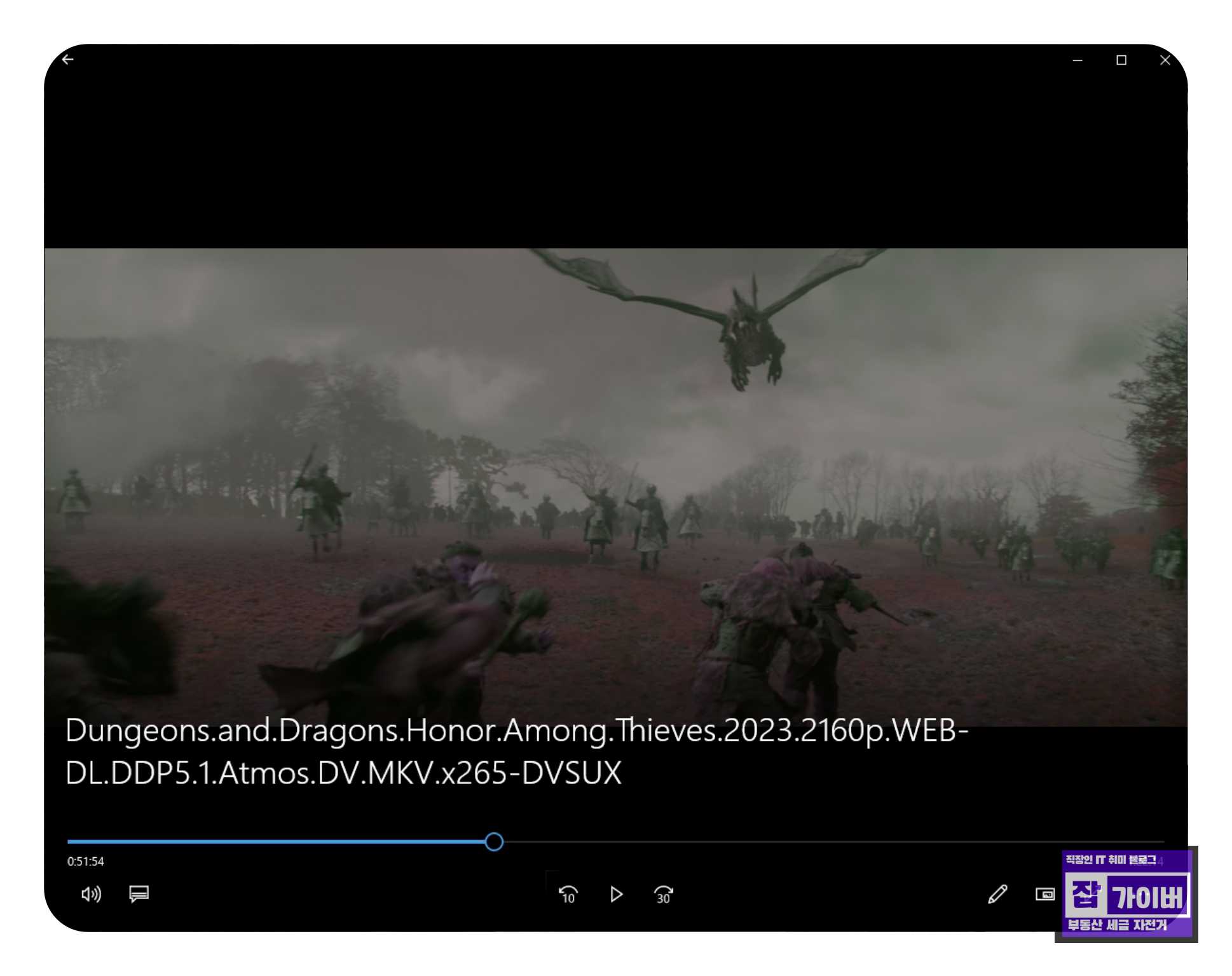 설치가 끝난 뒤에는 별다른 알림 없이도 HEVC VIDEO EXTENSIONS H265 코덱이 적용되어 동영상 재생이 진행됩니다.
