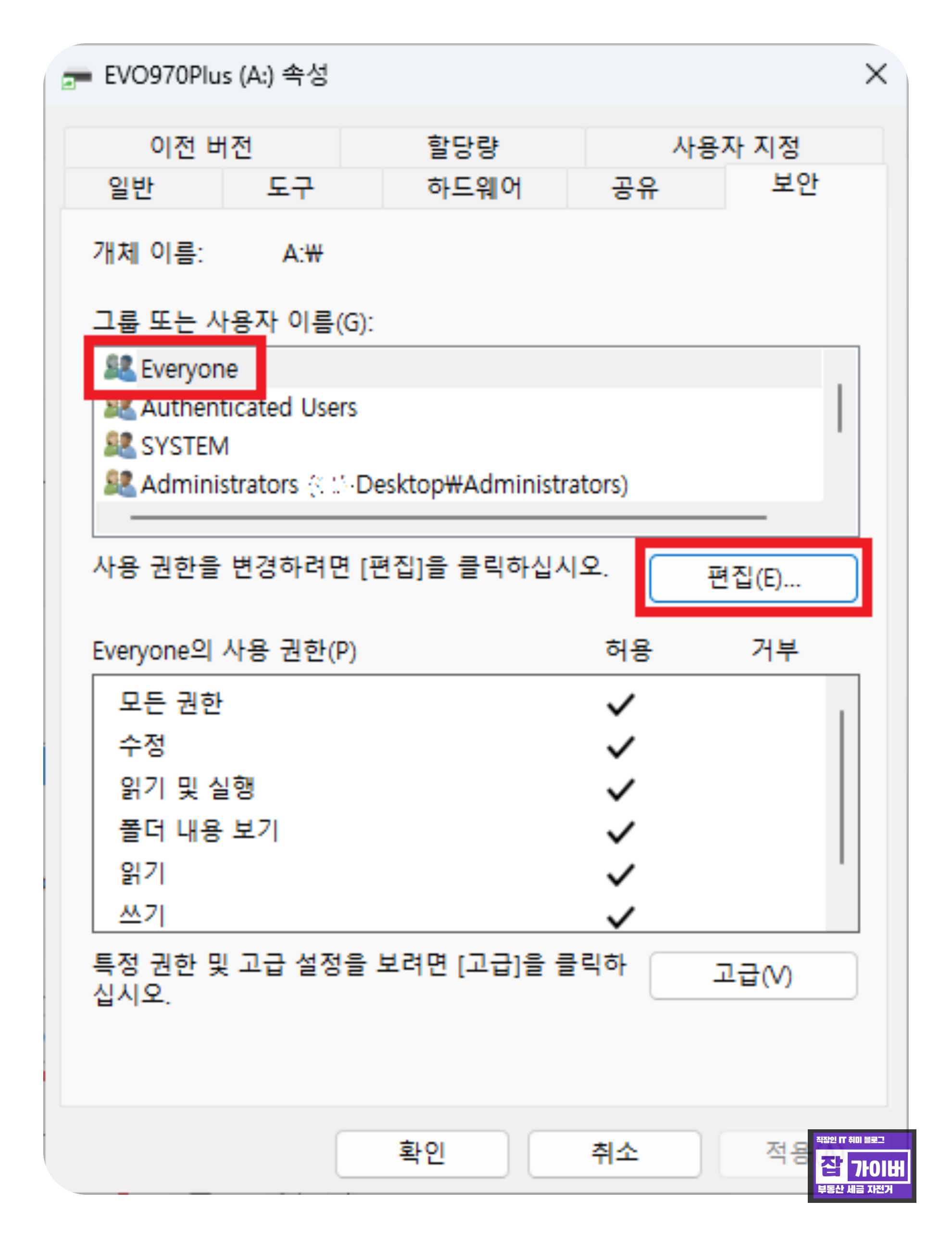 윈도우11 폴더 및 파일 읽기전용 변경 안될 때 사용자권한 변경