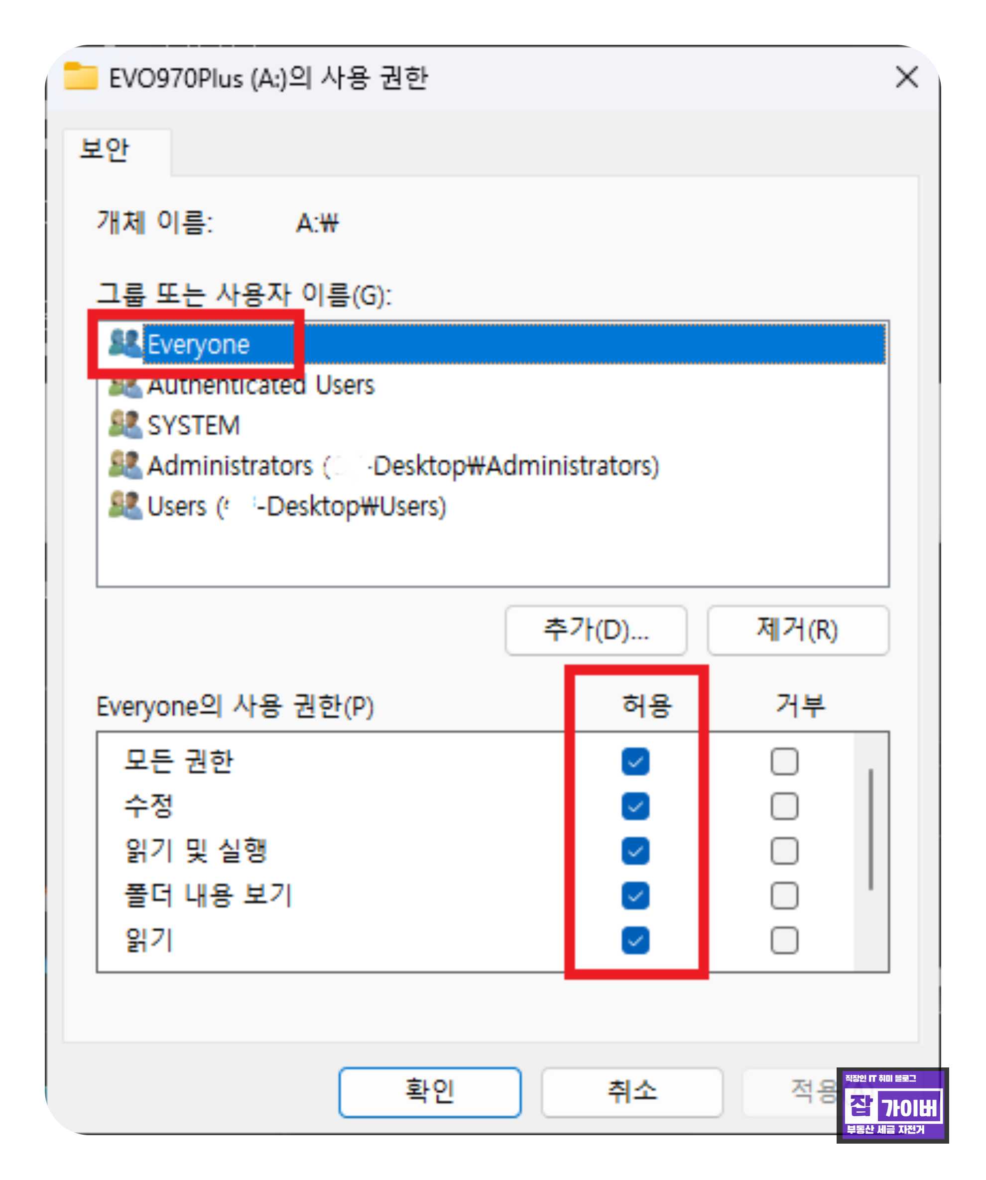 이로써 폴더의 소유자가 변경되어 읽기 전용 속성이 해제됩니다.