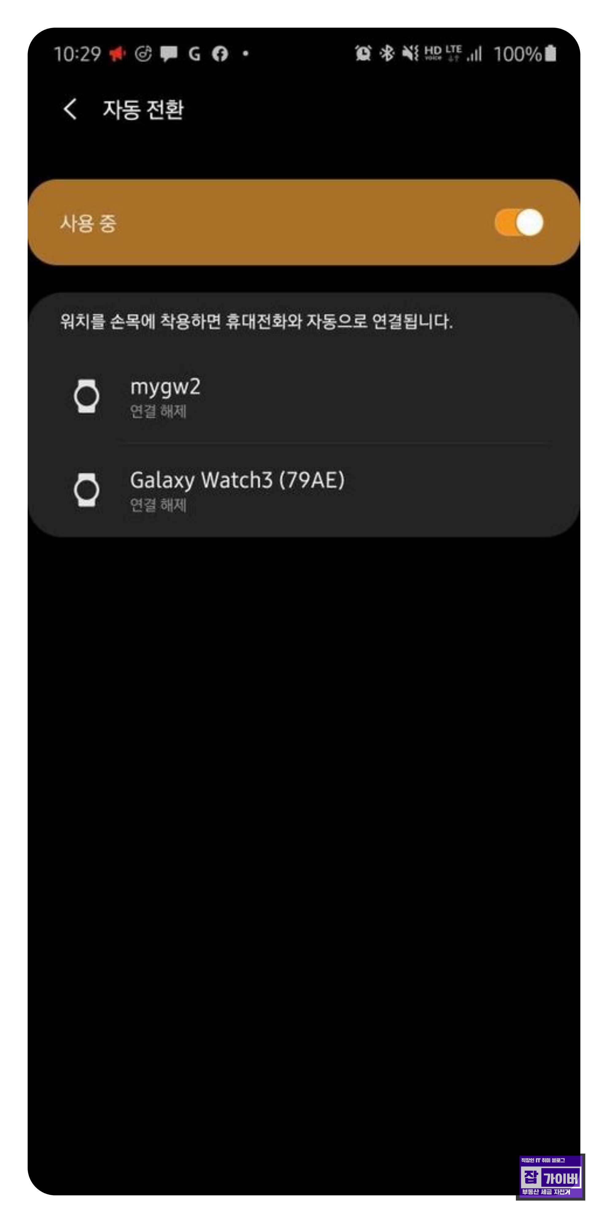 갤럭시워치 LTE 모델은 자동전환과 무관한가요?