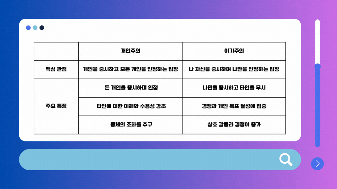 개인주의 이기주의 특징 및 차이점