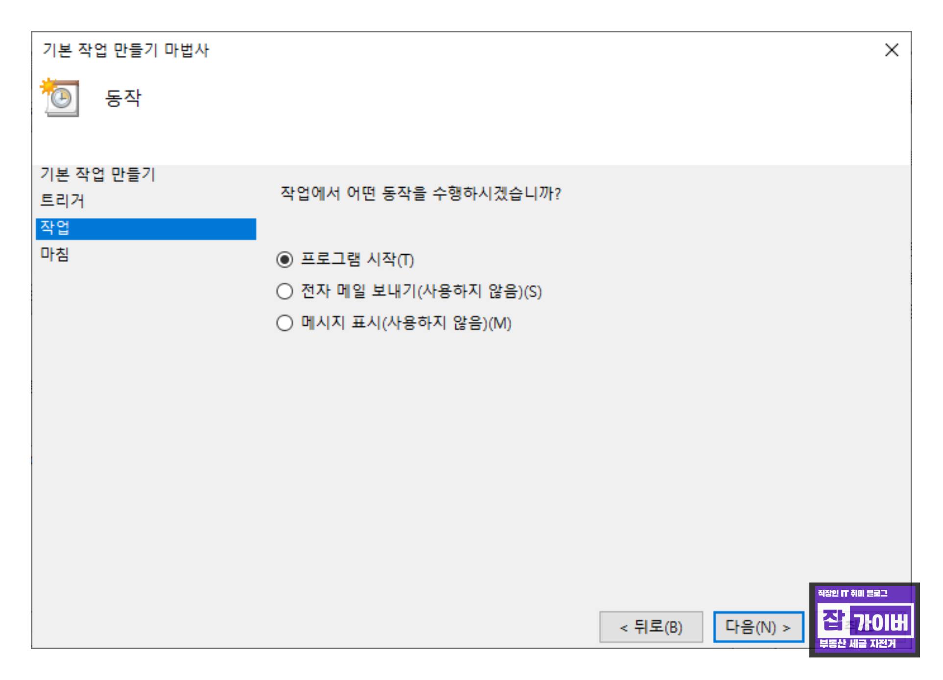 작업 스케줄러 창에서 '작업 만들기'를 선택하면 '새 작업 만들기' 창이 나타납니다.