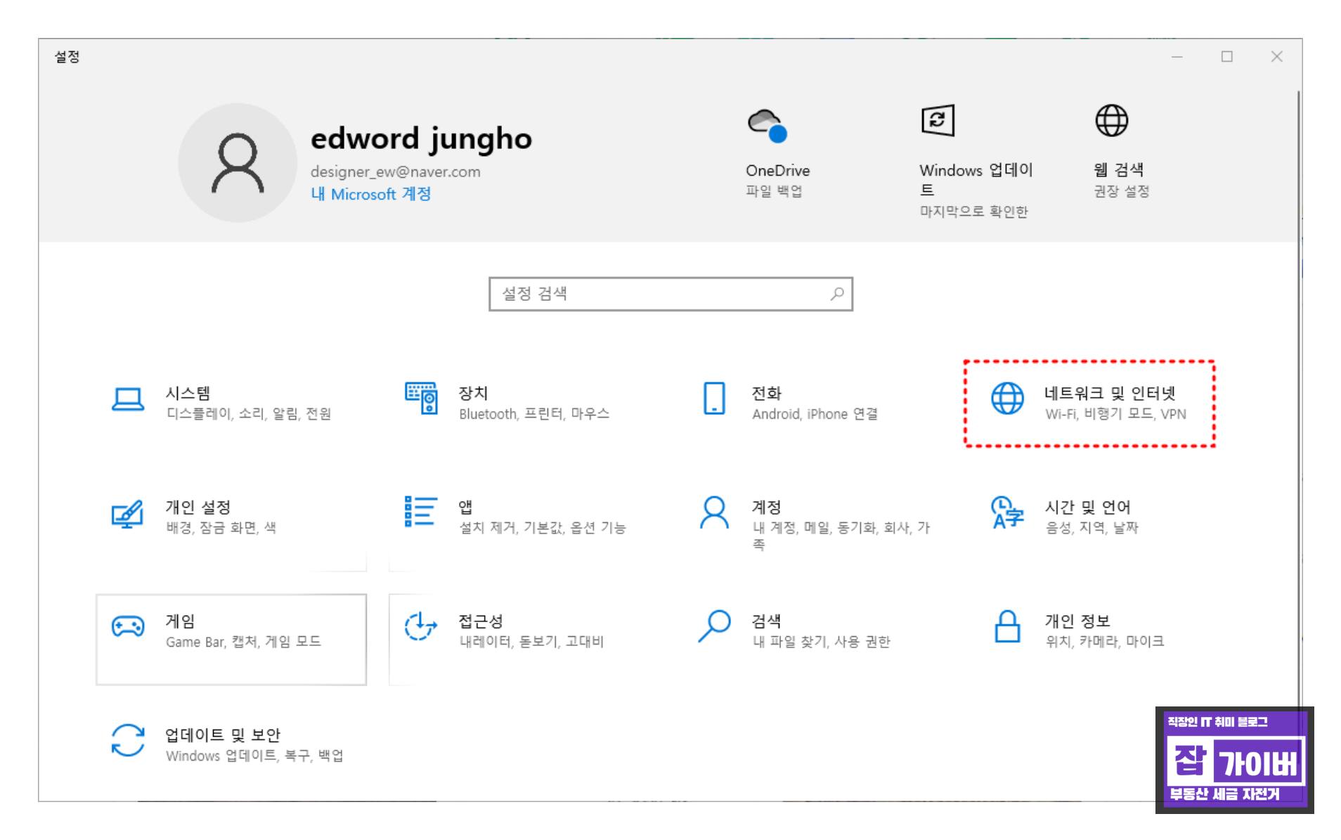 설정 변경은 '윈도키 + i'를 눌러 '네트워크 및 인터넷' 항목으로 이동한 후 이더넷 또는 와이파이 항목에서 진행할 수 있습니다.