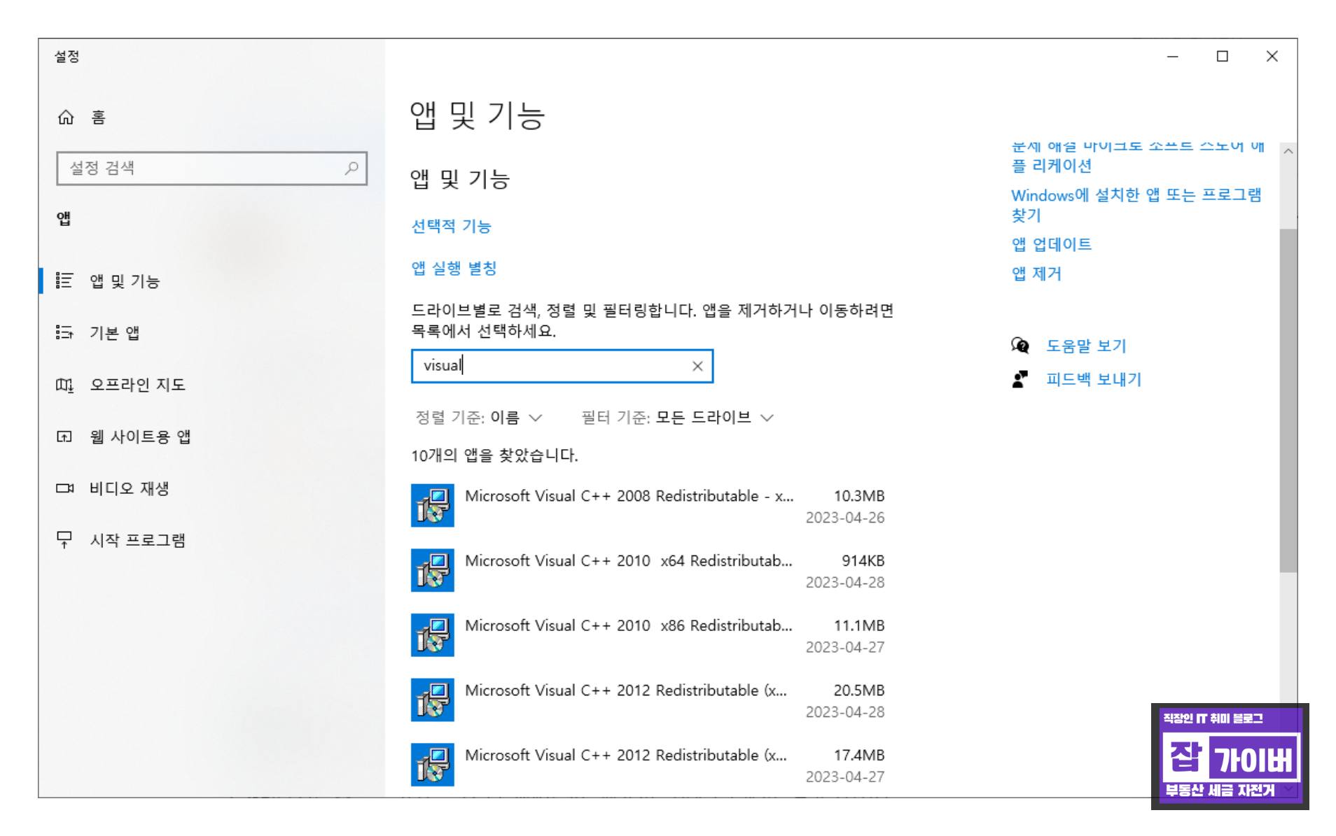 검색 목록에 Microsoft Visual C++ Runtime Library 입력하면 삭제하기 쉽게 목록이 검색됩니다.