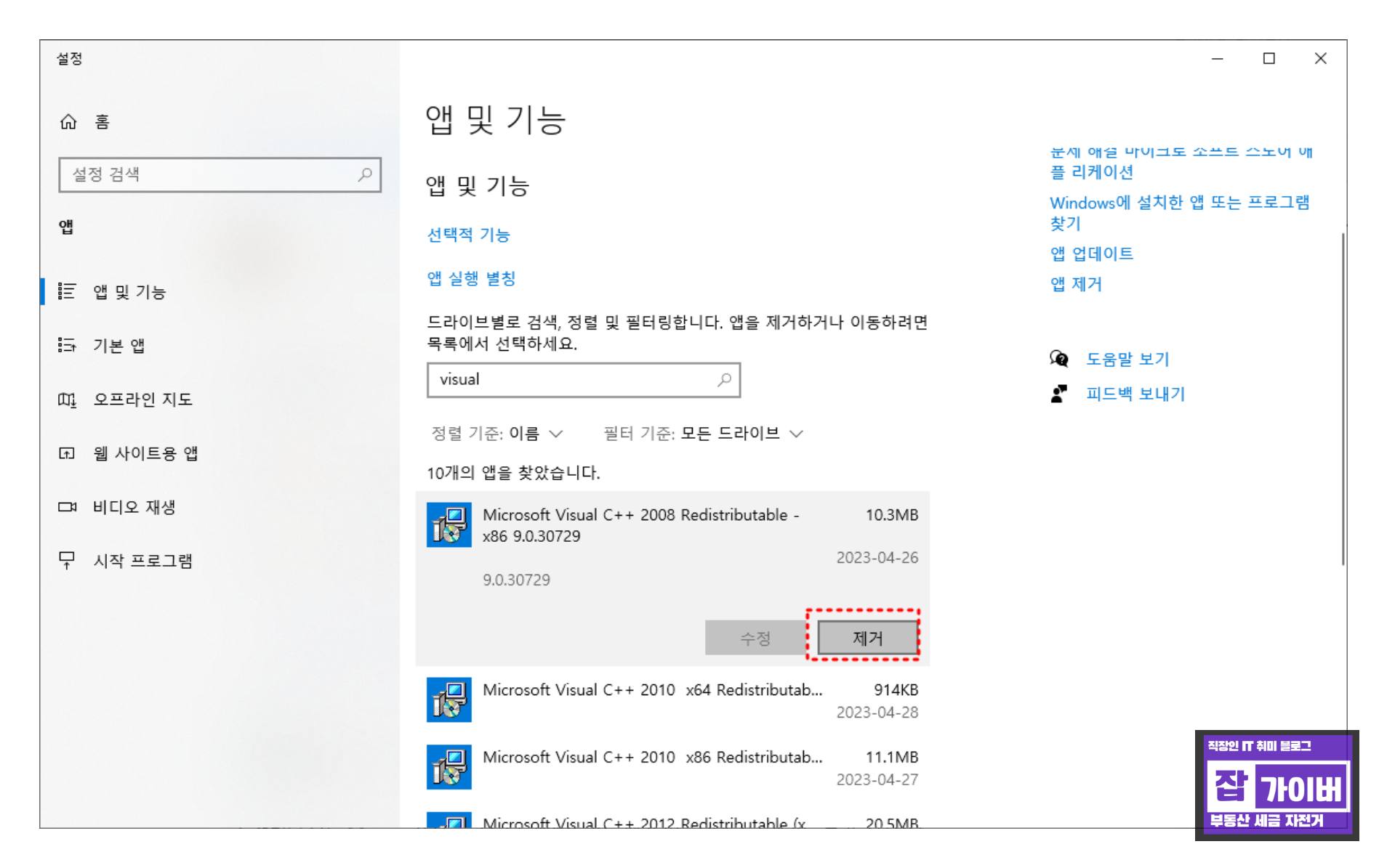검색 목록에 Microsoft Visual C++ Runtime Library 입력하면 삭제하기 쉽게 목록이 검색됩니다.