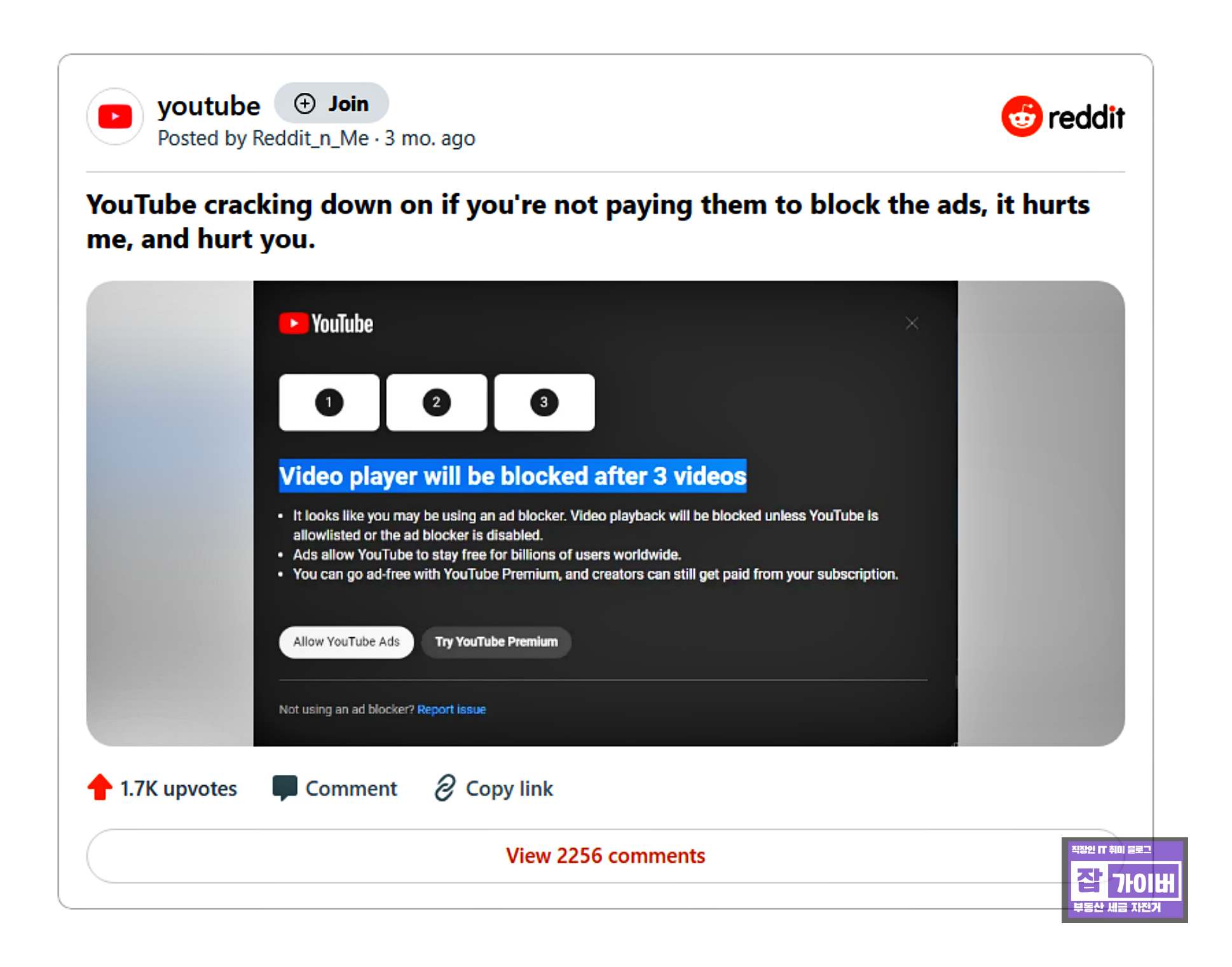유튜브 광고 차단 프로그램 - Youtube 서비스 약관 위반