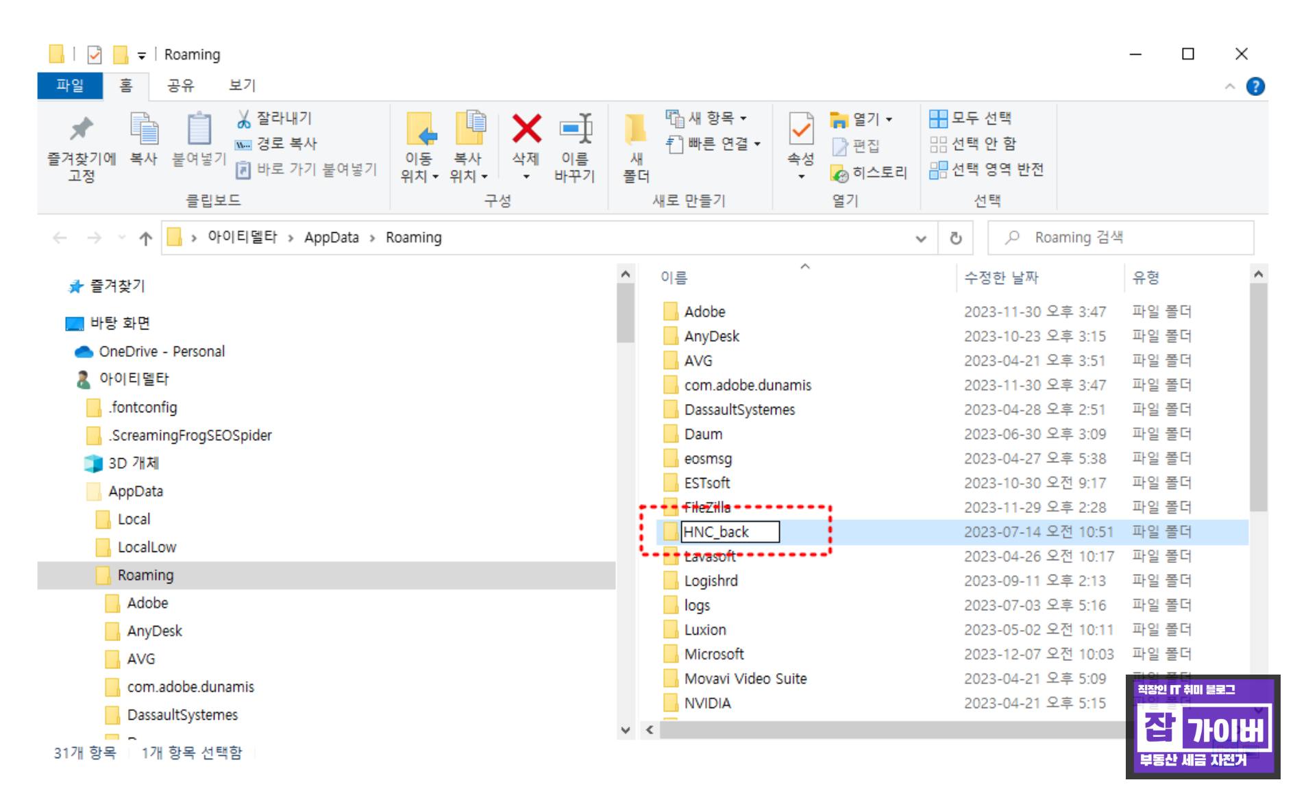 여기에서 HNC라는 폴더를 찾아 이름을 HNC.bak으로 변경한 후 한글을 실행해 봅니다. 이렇게 하면 새로운 HNC 폴더가 자동으로 생성되면서 문제가 해결될 수 있습니다.