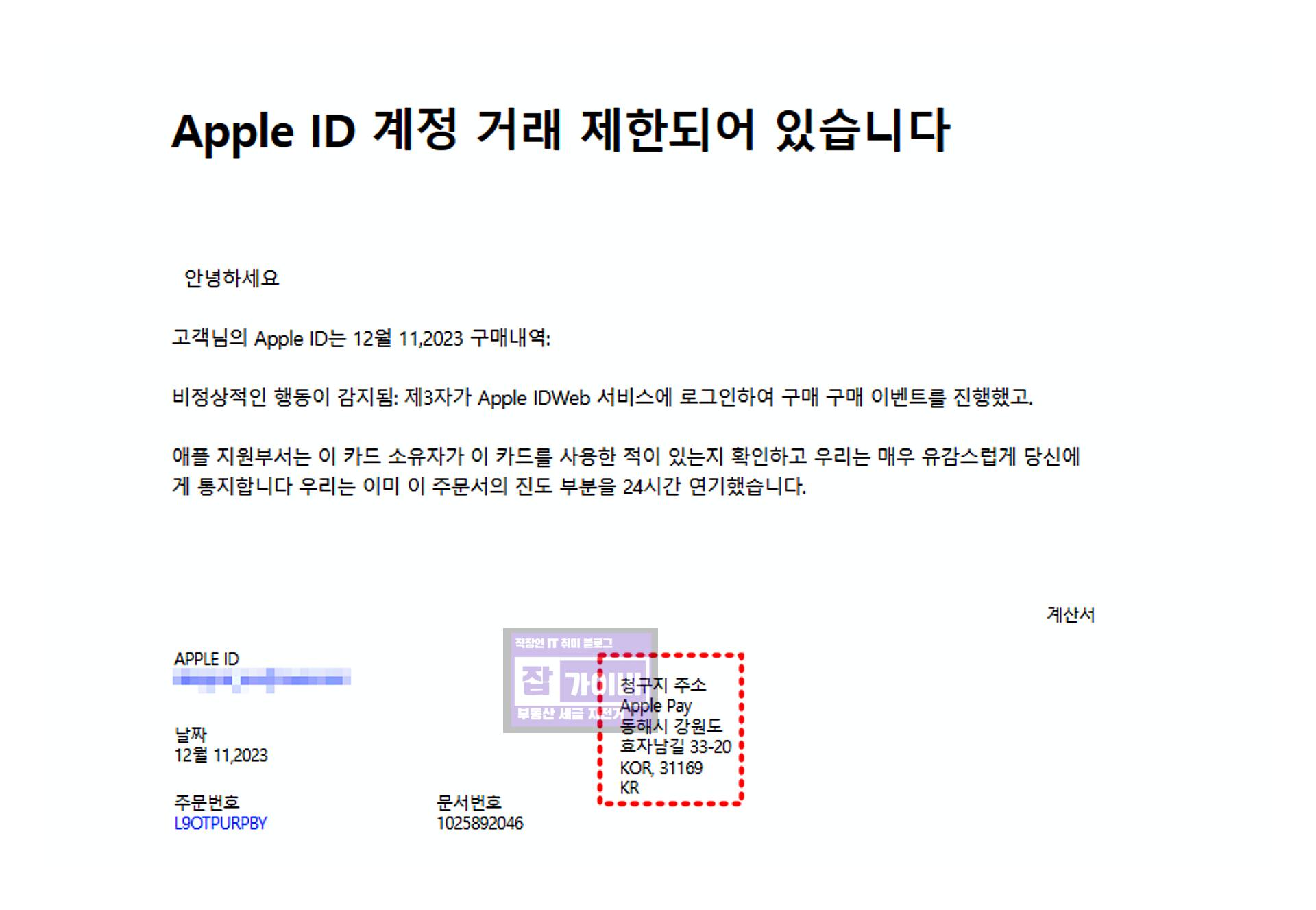 회사일을 하는데 갑자기 메일이 한통 날라와 보니 애플계정 해킹되었다고 일시적 제한메일이 왔습니다. 저는 아이폰이나 별도의 애플계정을 사용하지 않는데 유튜브 시청용으로 구입한 아이패드 미니6 하나 뿐인데 유로앱을 사용하지도 않기 때문에 해킹이 되었을거라고 생각이 들지 않았지만 아이폰15 프로맥스 512gb를 구입할려햇다는 메일과 함께 로그인했던 위치가 강원도 동해라고 나오기 때문에 조금 위험함을 느꼇습니다.