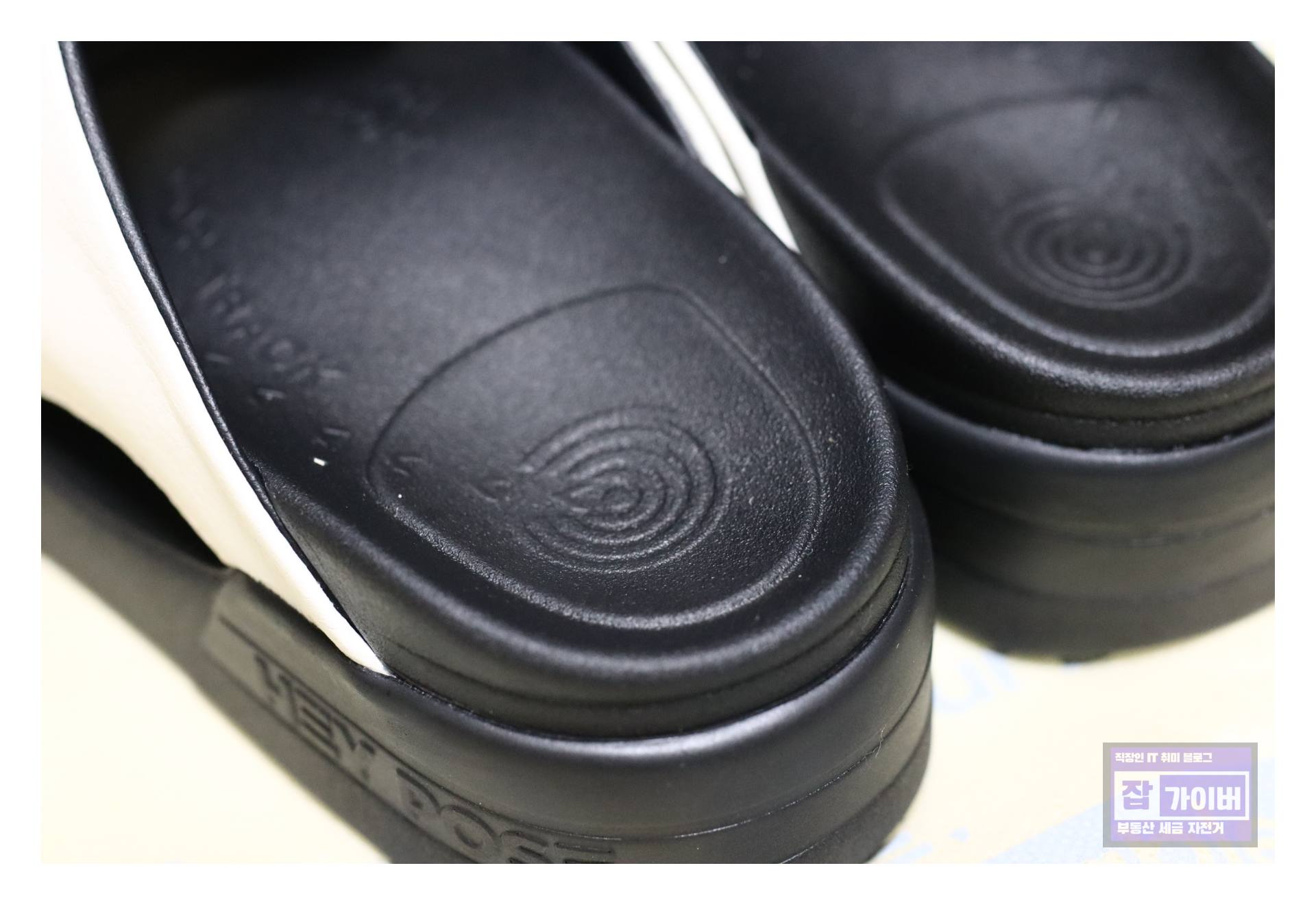 헤이포즈 슬리퍼는 아치사이즈와 신발사이즈를 기준으로 선택할 수 있는데, 평발의 경우 아치가 무너져 있어서 이런 아치형 신발을 신어줘야 체형이 교정되대요. 발가락 부분은 토오프 부스터로 중족골머리를 지지하고, 아치부분은 에어아치로 아치형상에 맞게 지지해주면서 발의 피로를 풀어주는 구조래. 특히 사무실이나 실내 외부에서 슬리퍼를 신고 걷는 것만으로 체형 교정과 발바닥 스트레칭 효과, 리커버리 효과를 동시에 누릴 수 있어요.