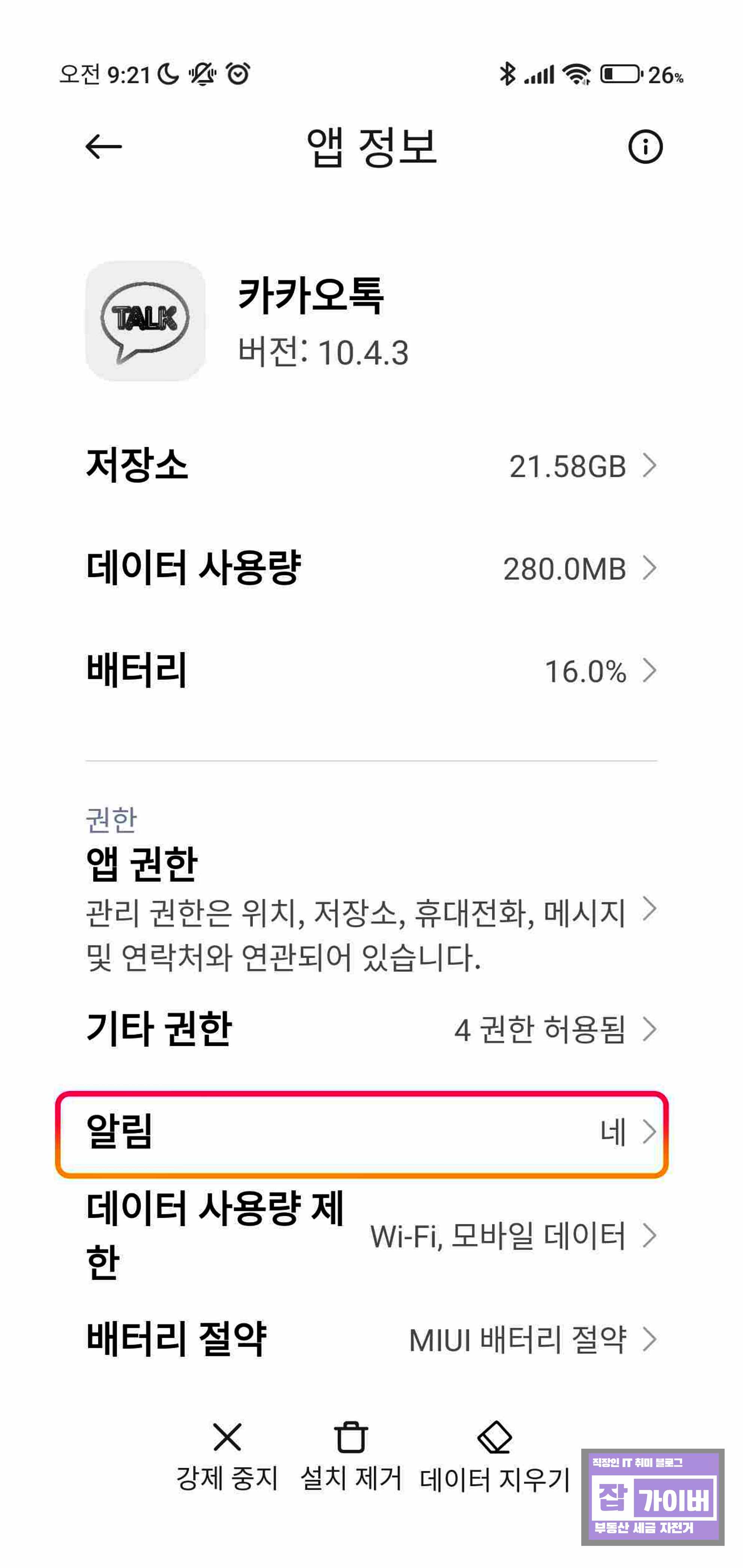 | 3 | 카카오톡 앱 정보 > 알림 |