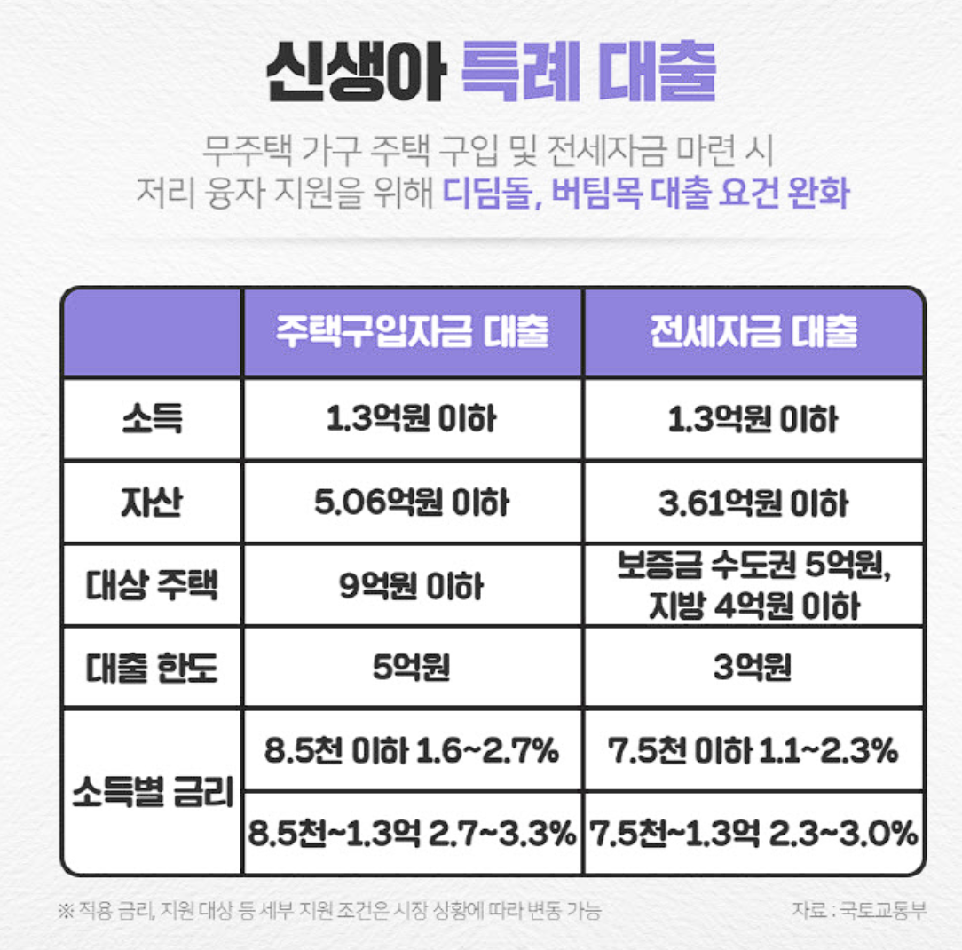 | 대출 대상 | 출산 후 2년 이내에 무주택 가구 |