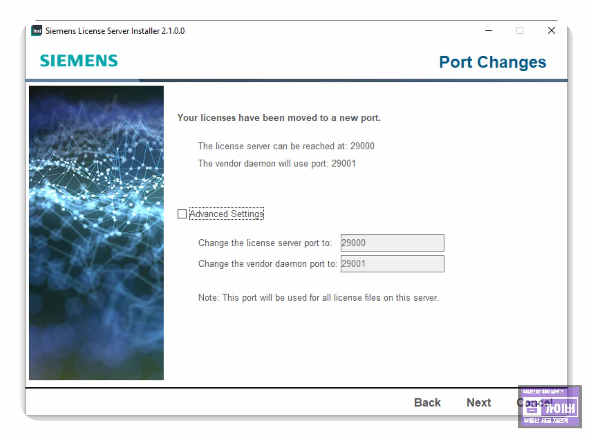 이 경우, 아래 경로에서 ugslmd.lic 파일을 확인하고 포트를 수정합니다.