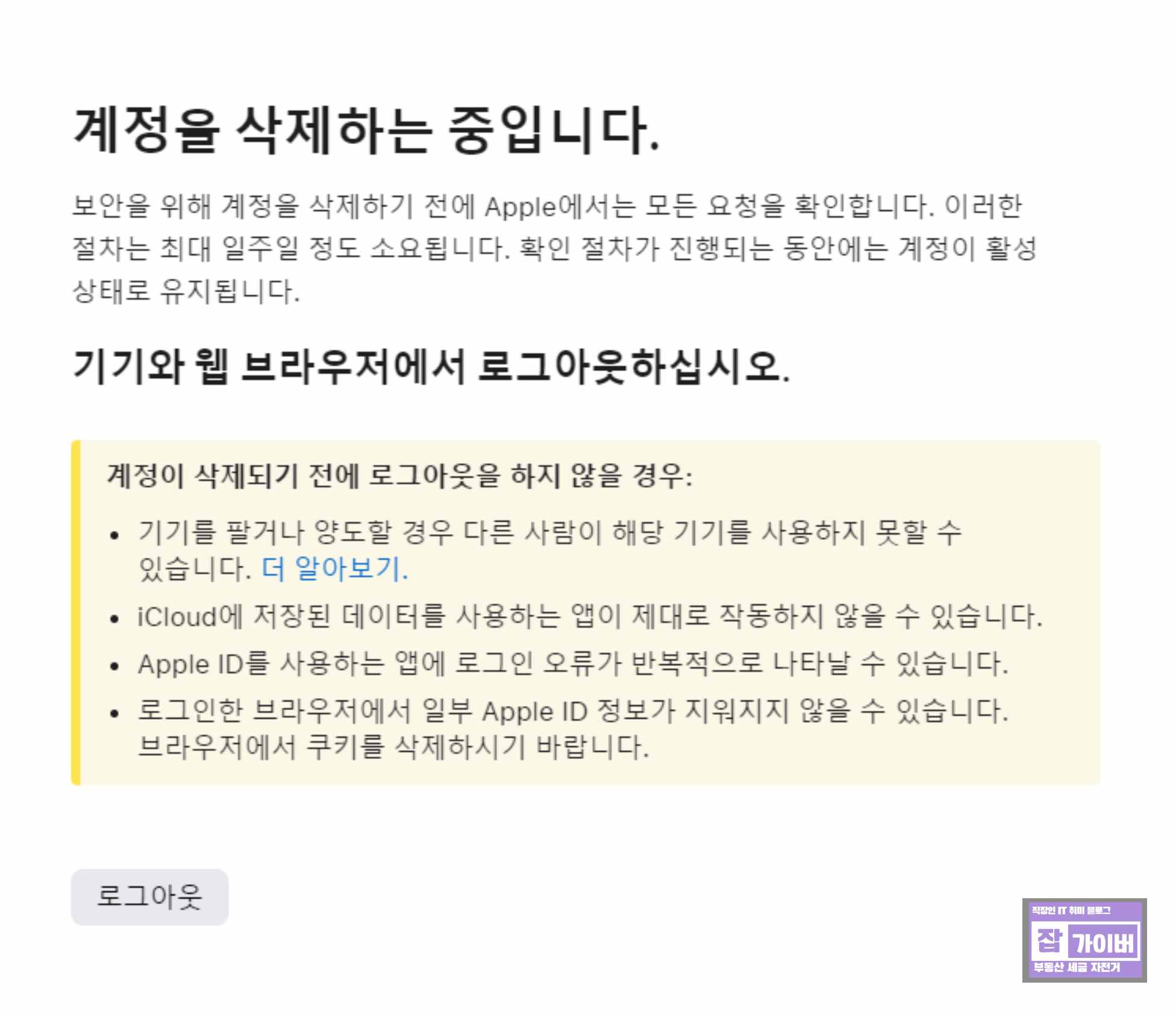 하지만 이런 불안한 사건이 반복되며 애플계정이 탈취된 채로 다시 복구되지 않았고 애플 고객센터에 문의해도 해결책이 없다는 답변을 받아 결국 계정을 삭제하게 되었습니다. 애플 계정 삭제까지는 시간이 걸렸지만, 다행이 마음은 편해졌고 다행히 애플계정에 별도의 카드정보를 등록하지 않아 결제되거나 하지 않았습니다.