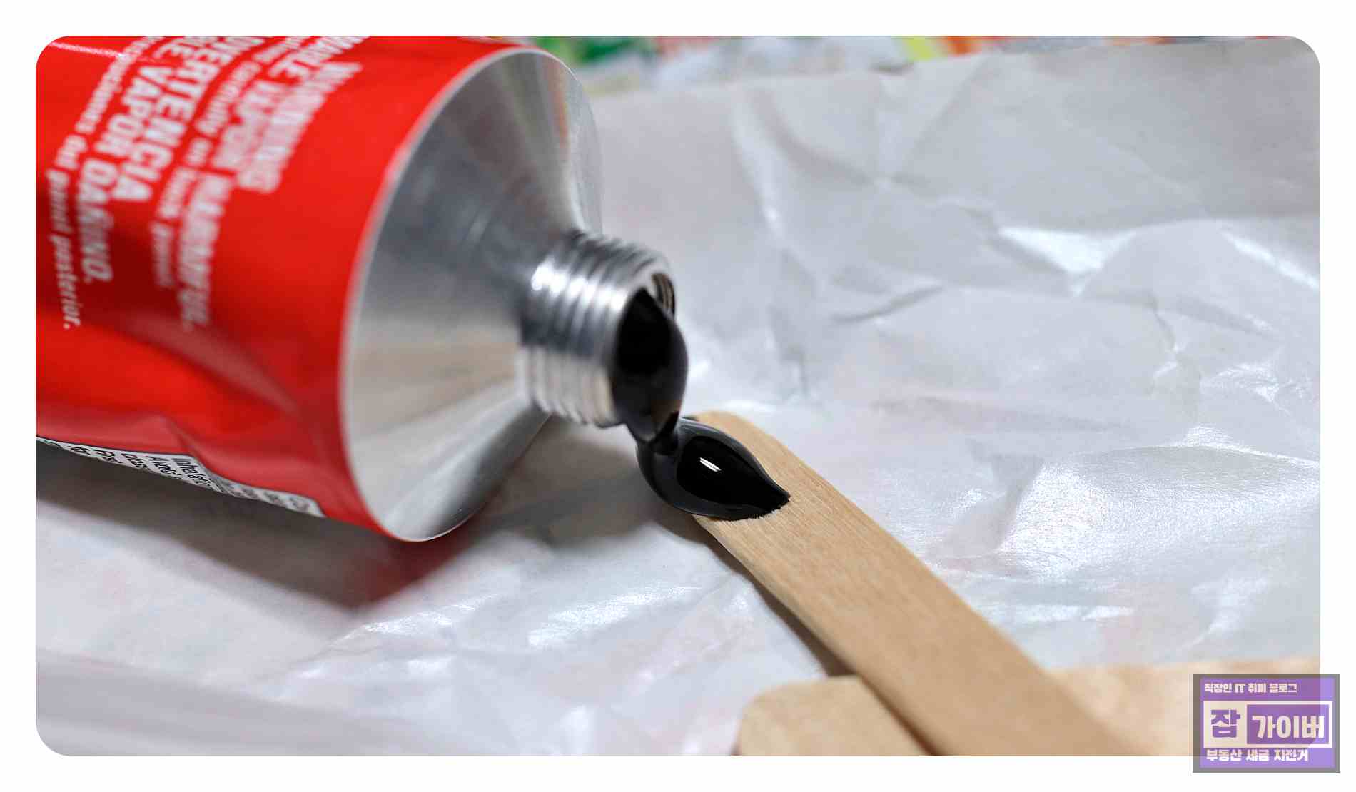 물묻힌 막대로 바를면에 골고루 얇게 발라줍니다.