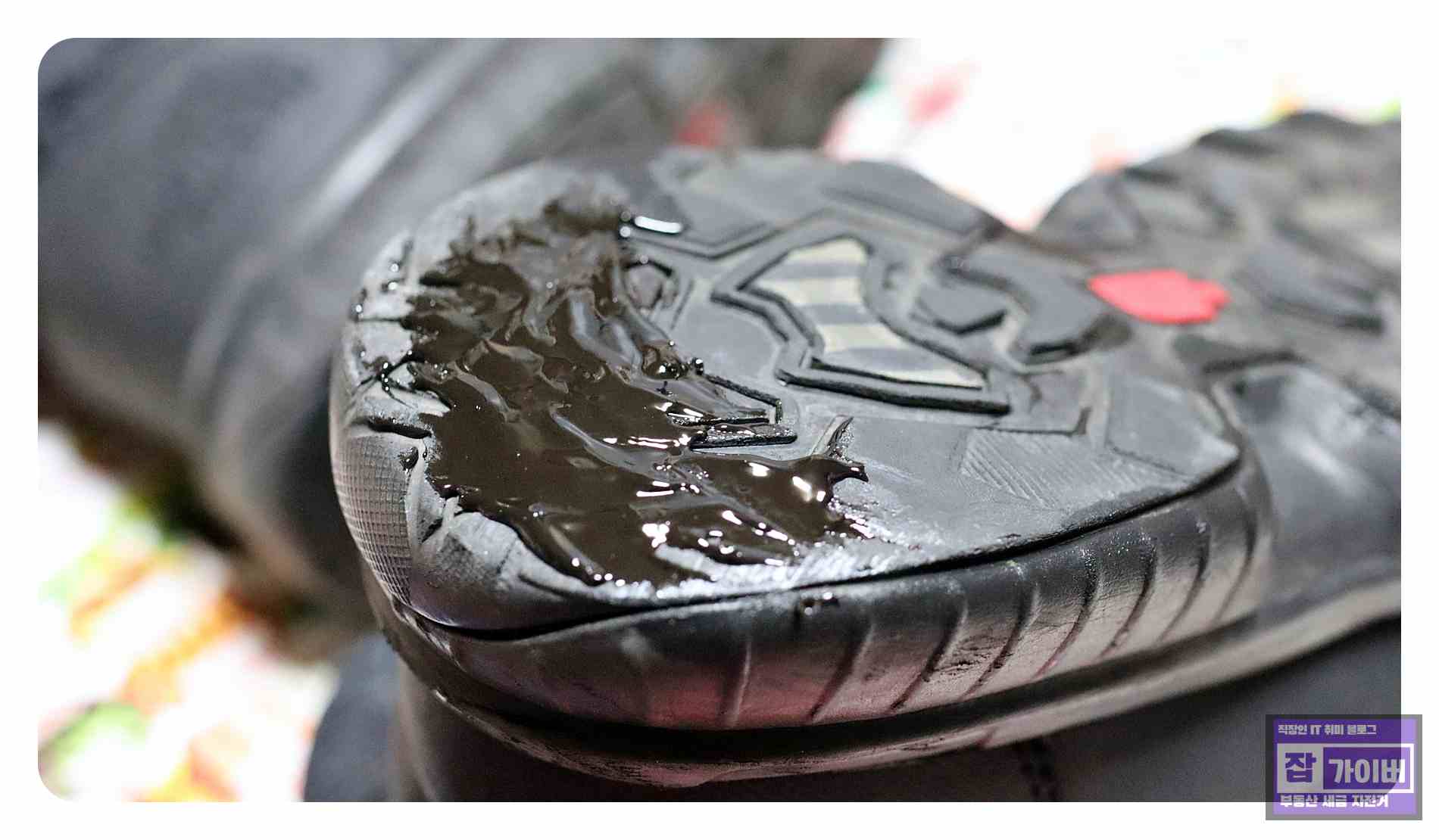 이 과정을 거친 결과, 슈구는 효과적으로 바닥 손상을 보수해주었고, 겨울용 패딩부츠의 밑바닥도 자전거 페달에 찍힌 흔적을 신경 쓰지 않아도 되게 만들었으며 미국산 슈구를 선택한 것은 일본산과는 다른 특성이 있을 것으로 기대하고 있습니다. 전반적으로 만족스러운 사용 후기를 남기며, 슈구의 효과를 체감하게 되었습니다.