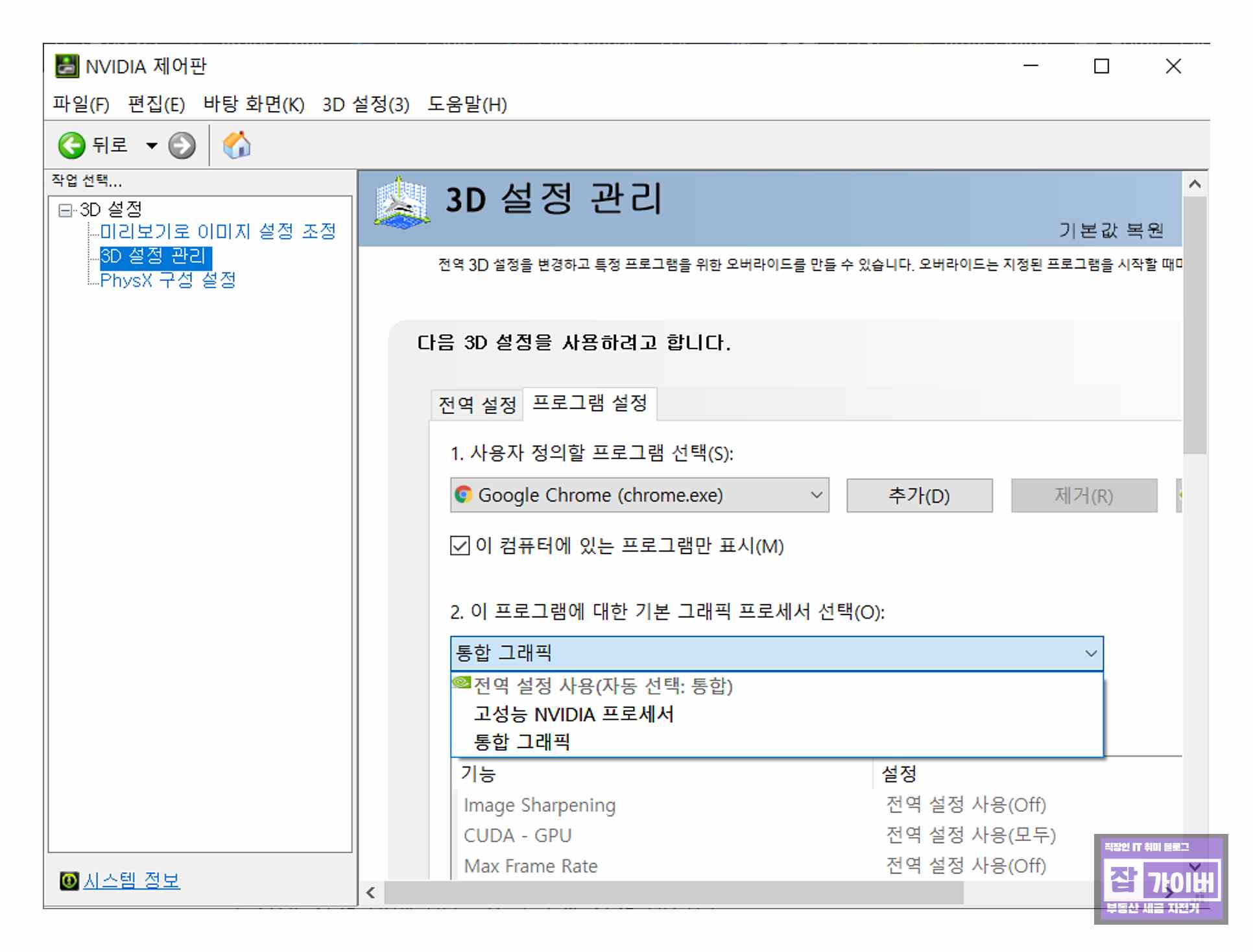 노트북 내장그래픽카드 비활성화 외장그래픽카드 설정 - 노랗IT월드