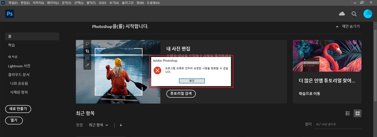 포토샵 재시작 후 오류확인